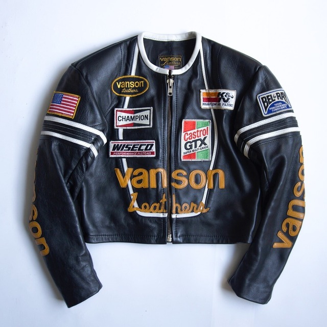 【雰囲気抜群】 VANSON 【TJV オールレザー スタジャン】38 ホワイト ブラック ジャケット ワッペン USA製 バンソン 25100877