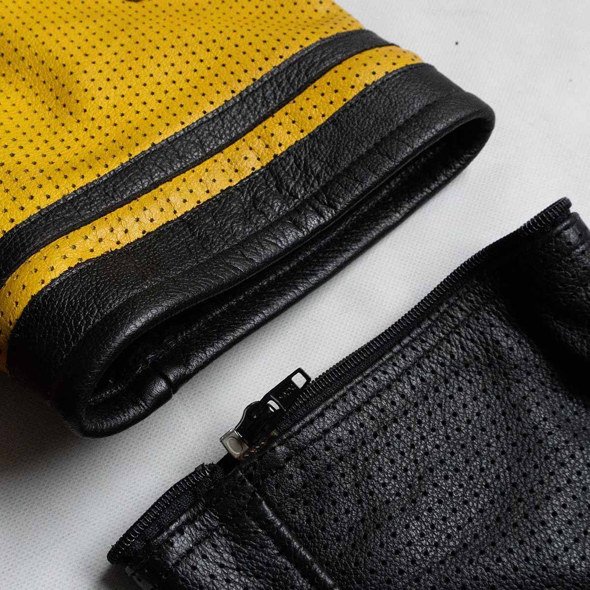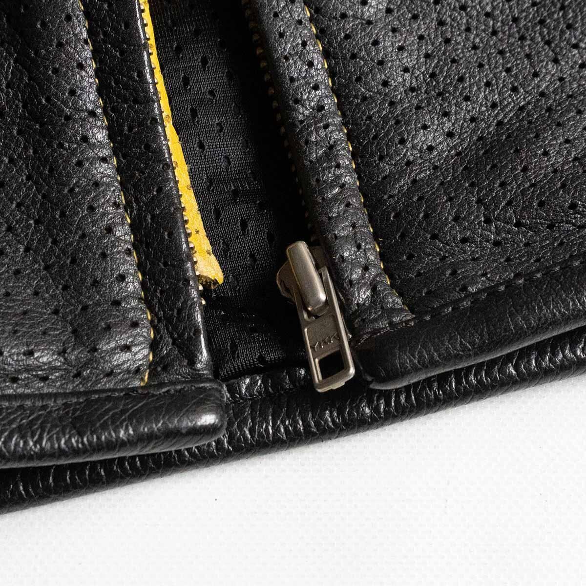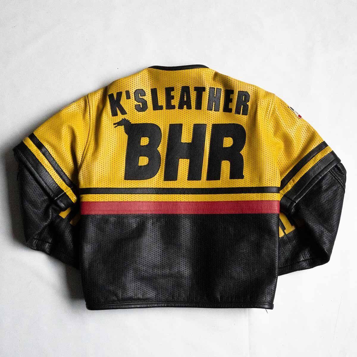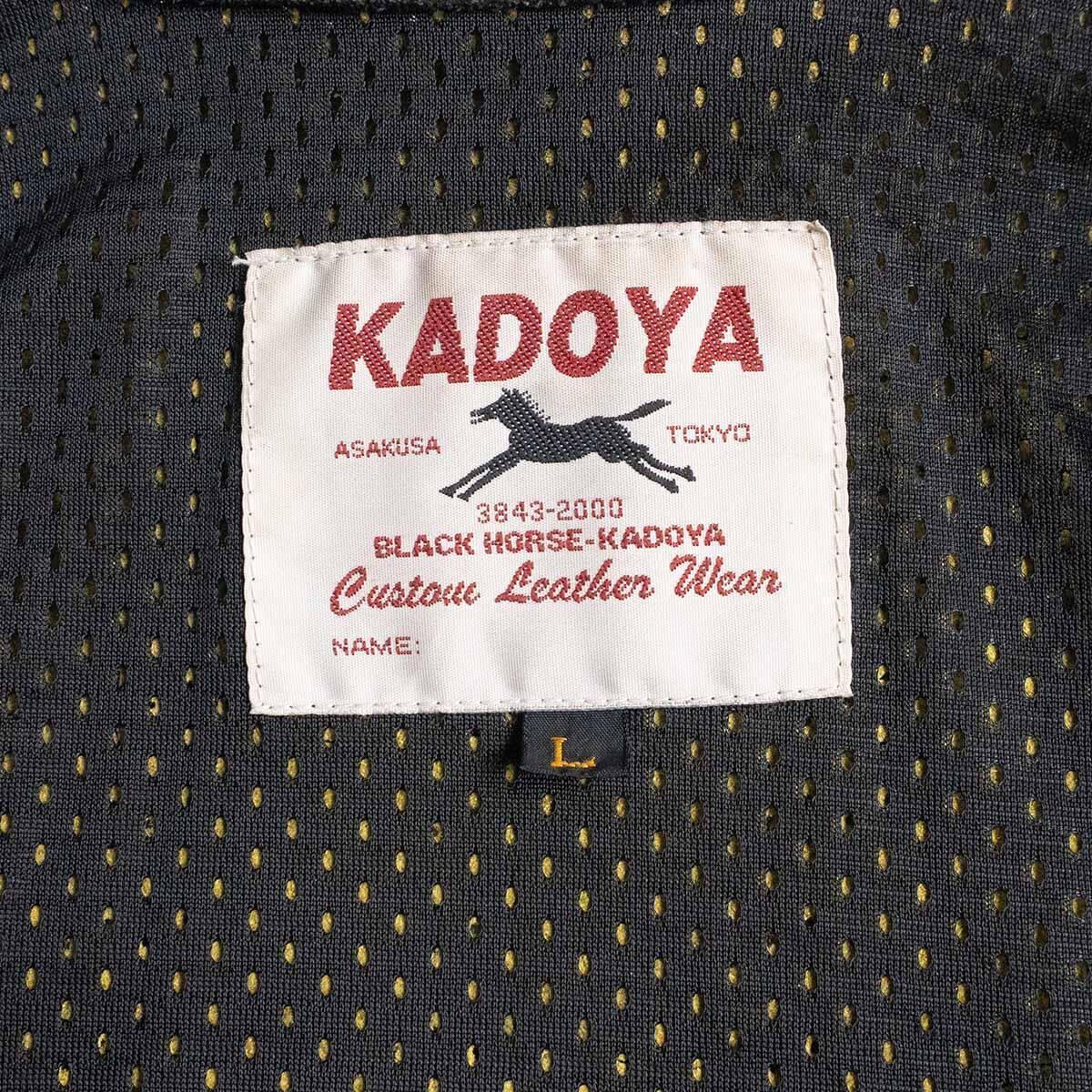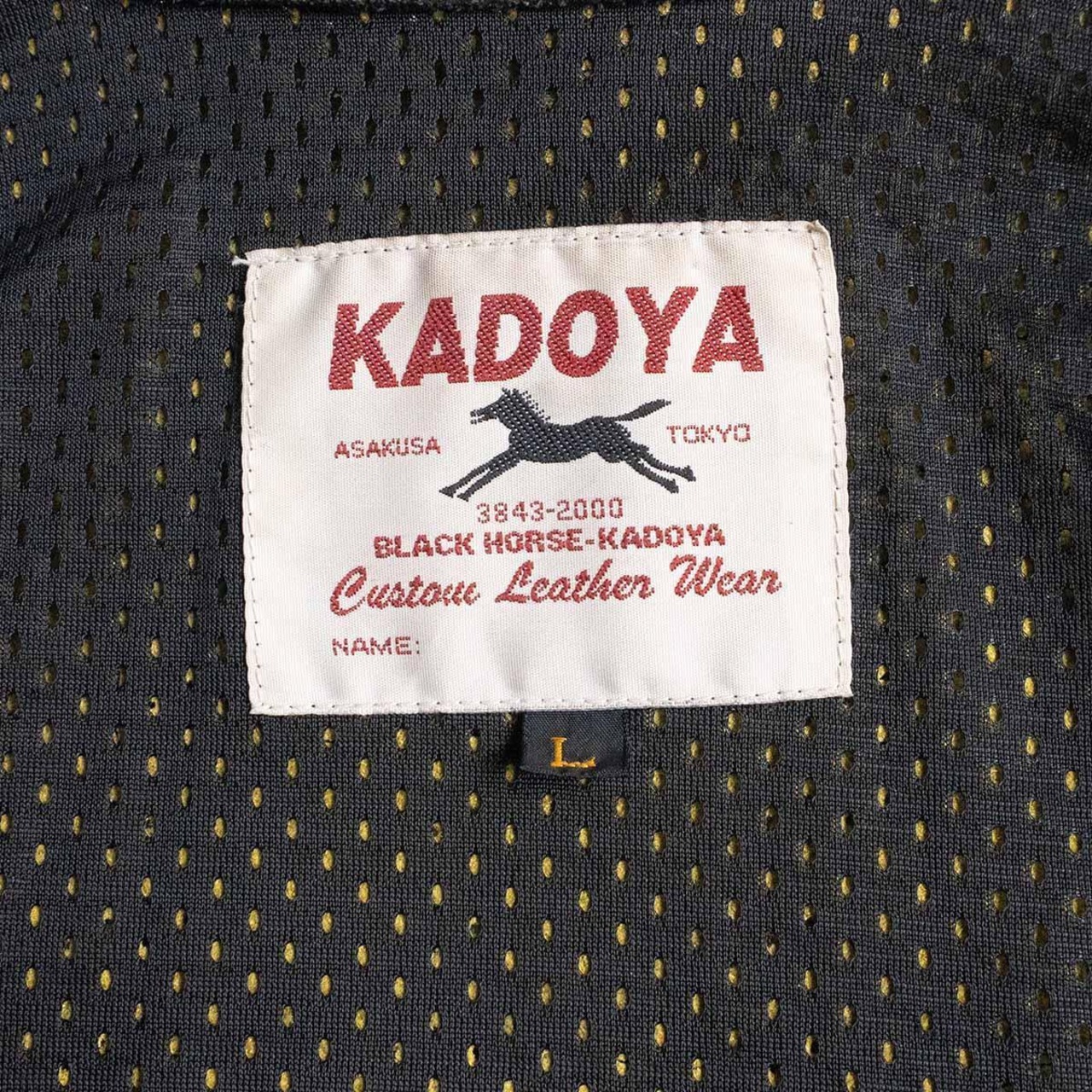 【美品】KADOYA【パンチング シングルライダースジャケット】 L イエロー×ブラック レザー BLACKHORSE カドヤ 25030367
