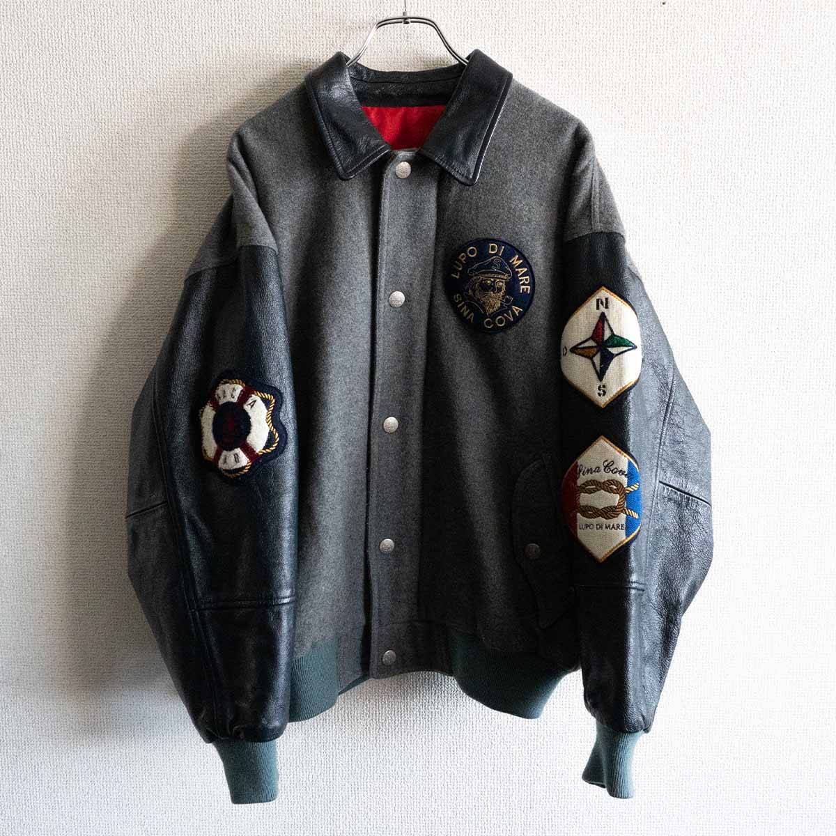 【美品】SINA COVA【袖レザー スタジャン】M レザー×メルトン シナコバ ワッペン 25030676