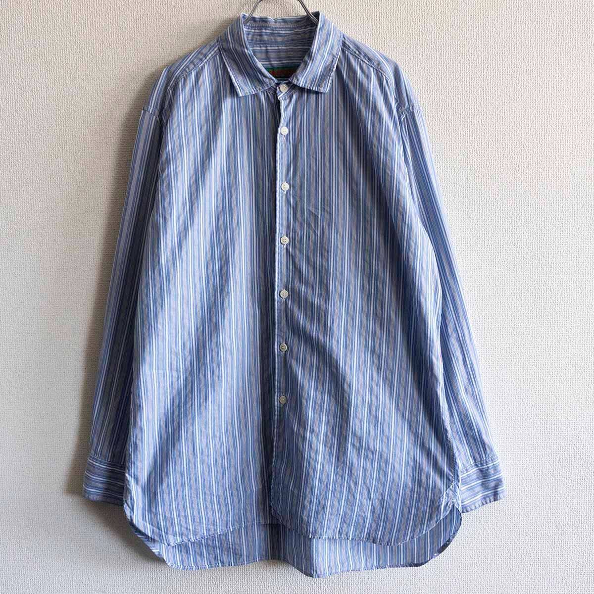 【美品】 CASEY CASEY 【16HC207/BIG RACCOURCIE SHIRT ストライプシャツ】S オーバーシルエット ケーシー ケーシー 25041015