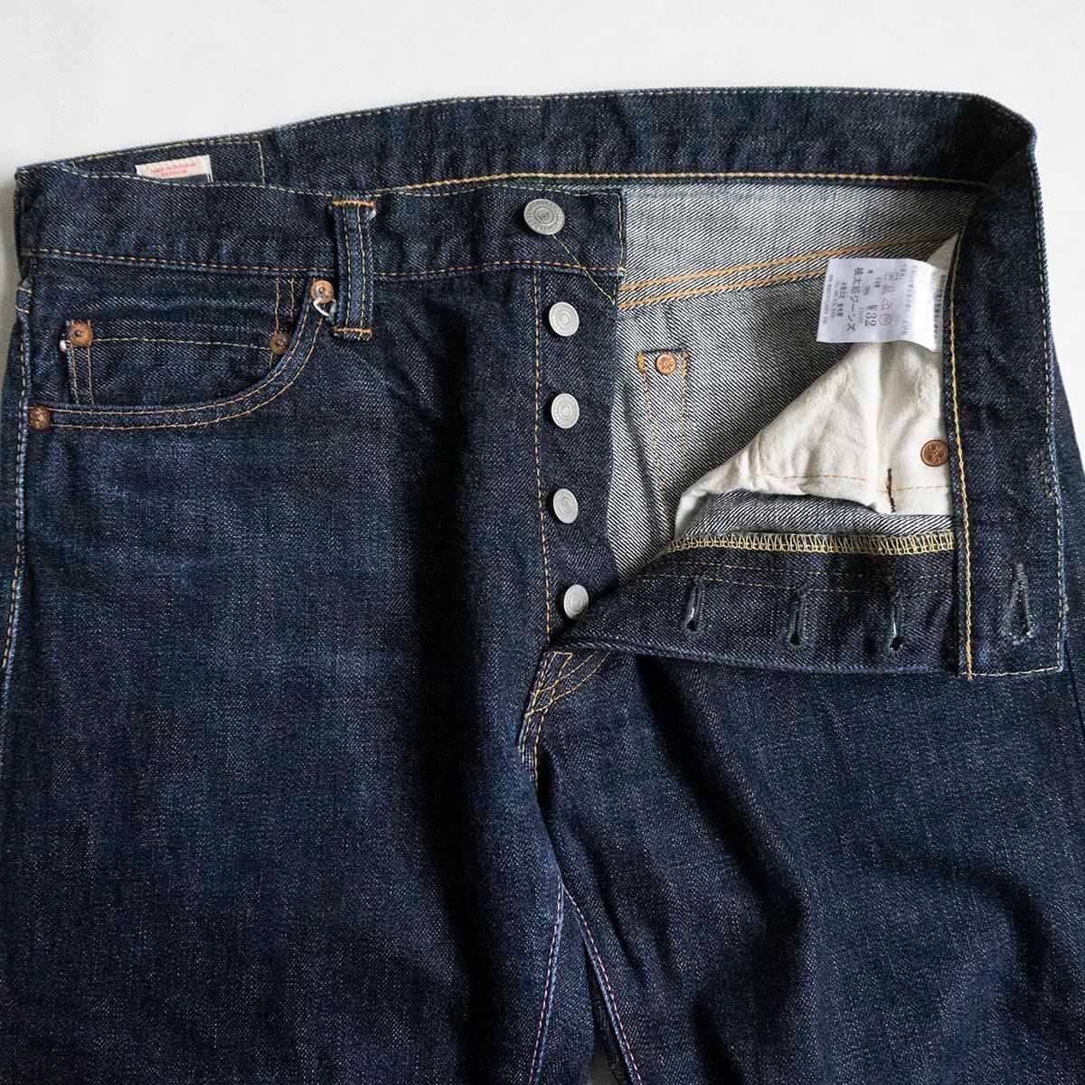 ロープ染色を繰り返し特濃インディゴブルーに染めたジンバブエコットン使用した1本。浅めの股上で若干のテーパードのきいた、ヒップ周りから裾まで全体的に細身なシルエットです。これから経年変化をお楽しみいただけます。