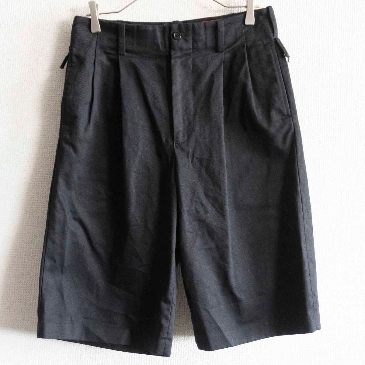 2タックで立体感を出したワイドシルエットのショートパンツ。ほのかな光沢のある綿素材を使用。生地端を表に出した、サイドのベルトループがユニークな1品。良いものをお探しの方は是非。