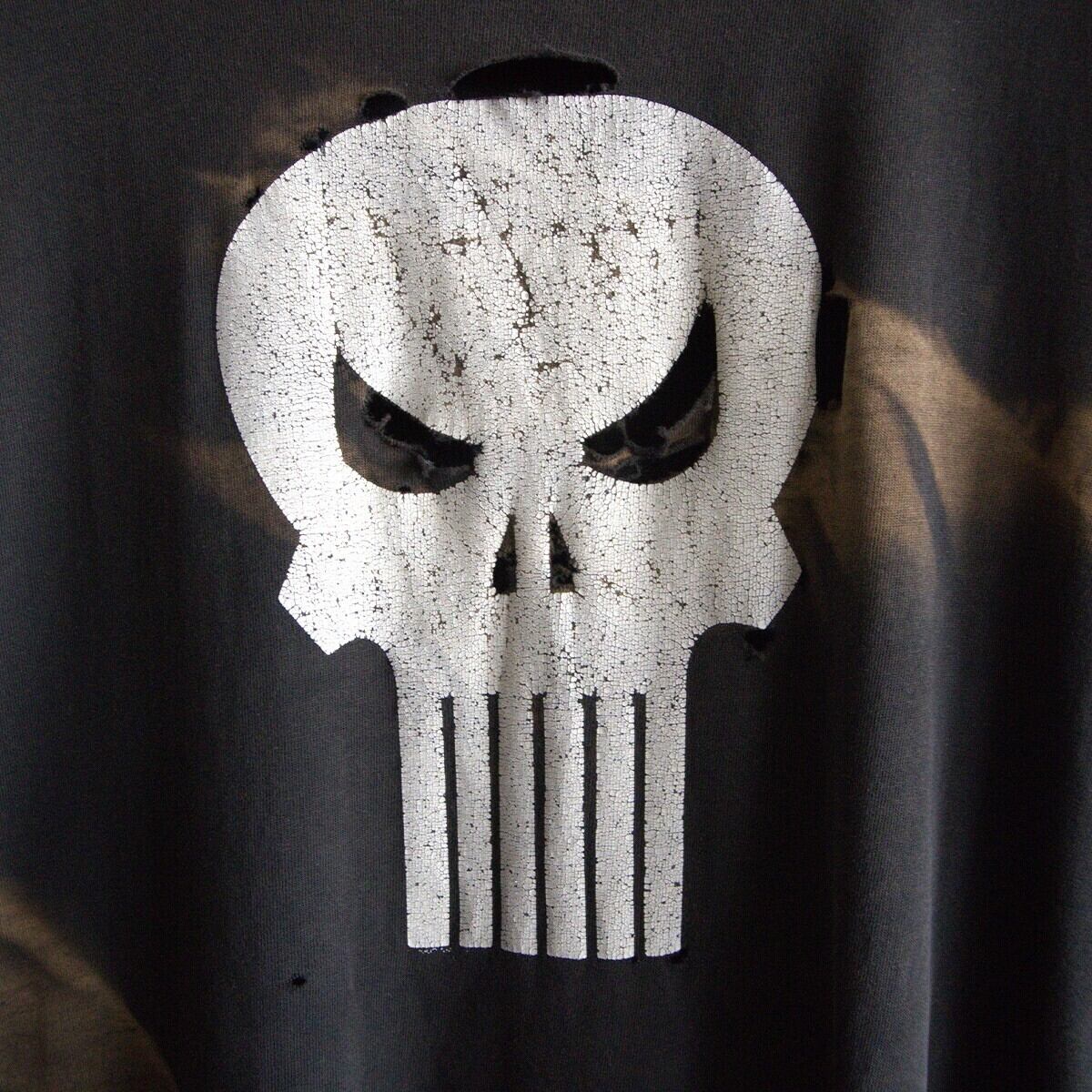 マーベルコミック作品のキャラクターパニッシャーのロンTでございます。グランジスタイルにハマる雰囲気抜群の1品。良いものをお探しの方は是非。