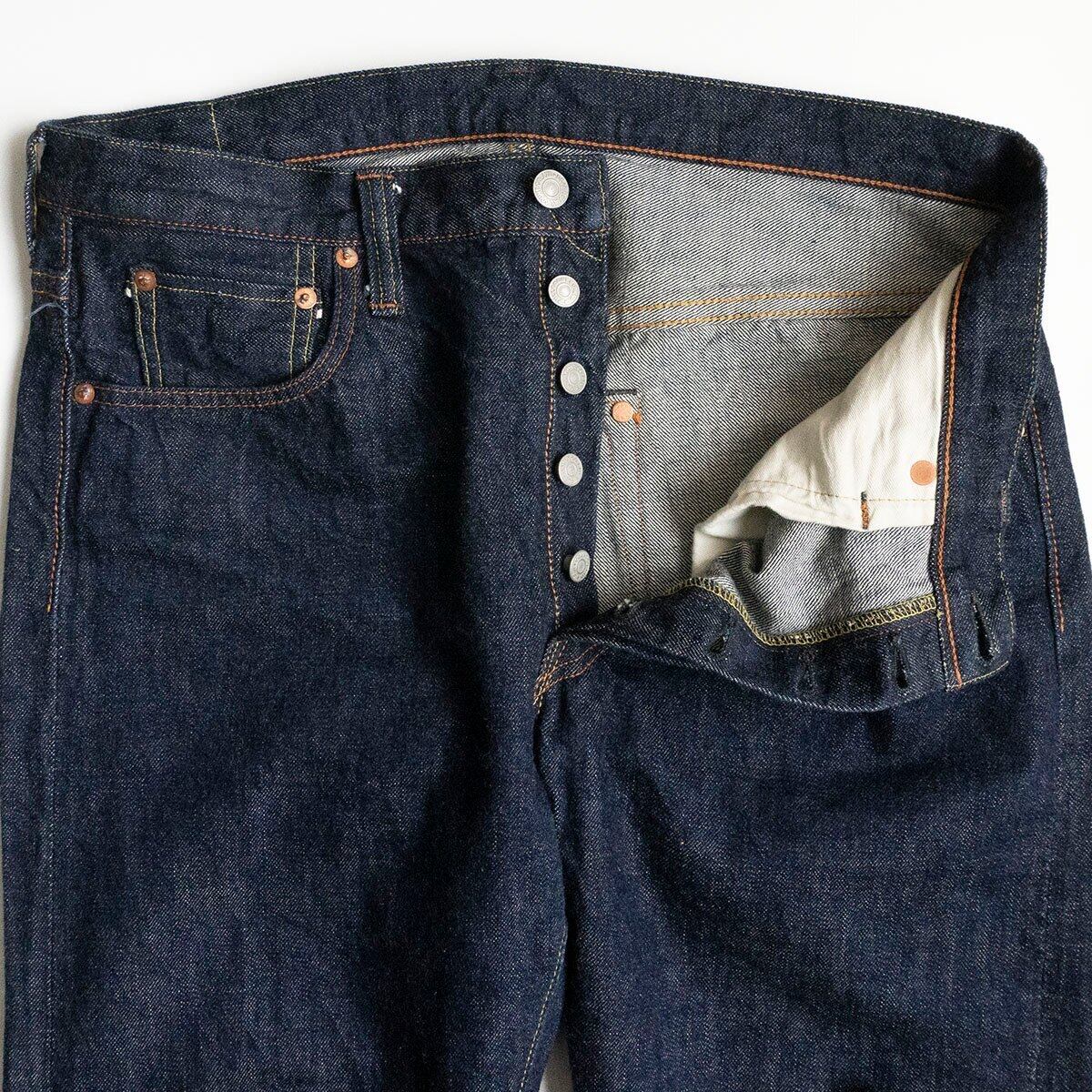 脚から膝にかけて細くなり、裾に向かって真っ直ぐ落ちるラインが特徴的な一本です。これから経年変化をお楽しみいただけます。お探しの方や気になる方は是非。