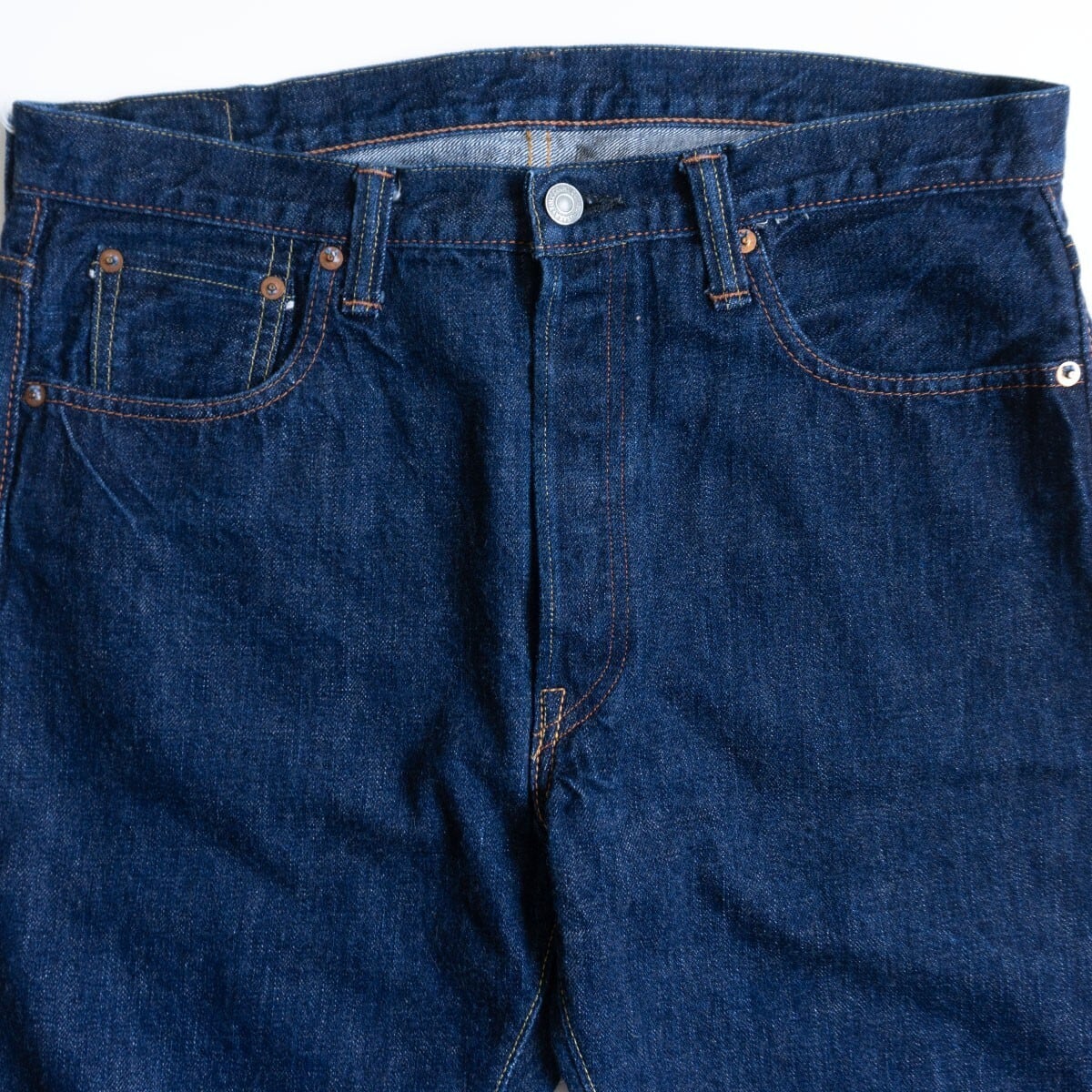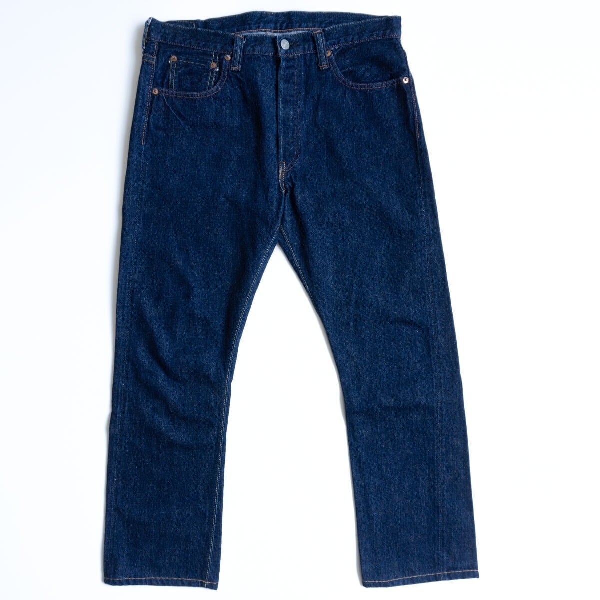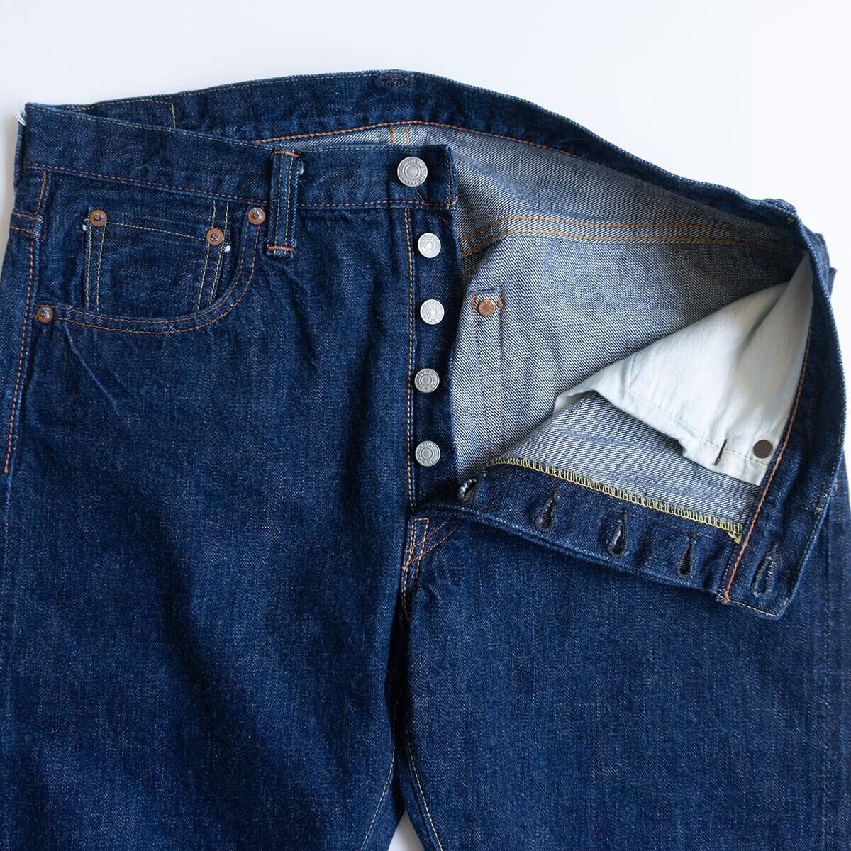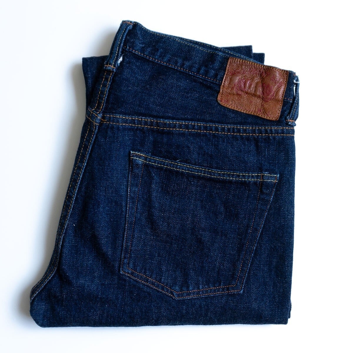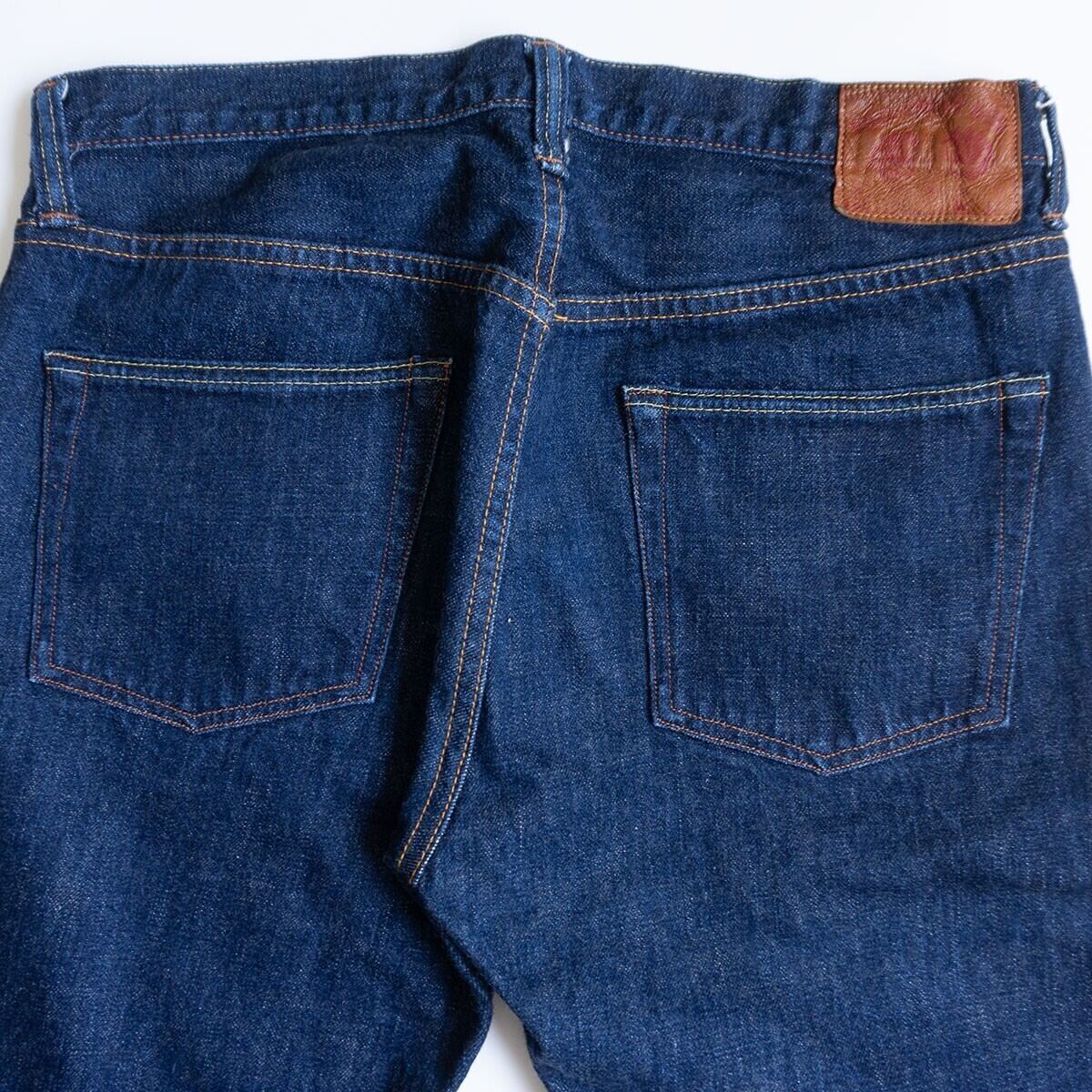 脚から膝にかけて細くなり、裾に向かって真っ直ぐ落ちるラインが特徴的な一本です。これから経年変化をお楽しみいただけます。お探しの方や気になる方は是非。