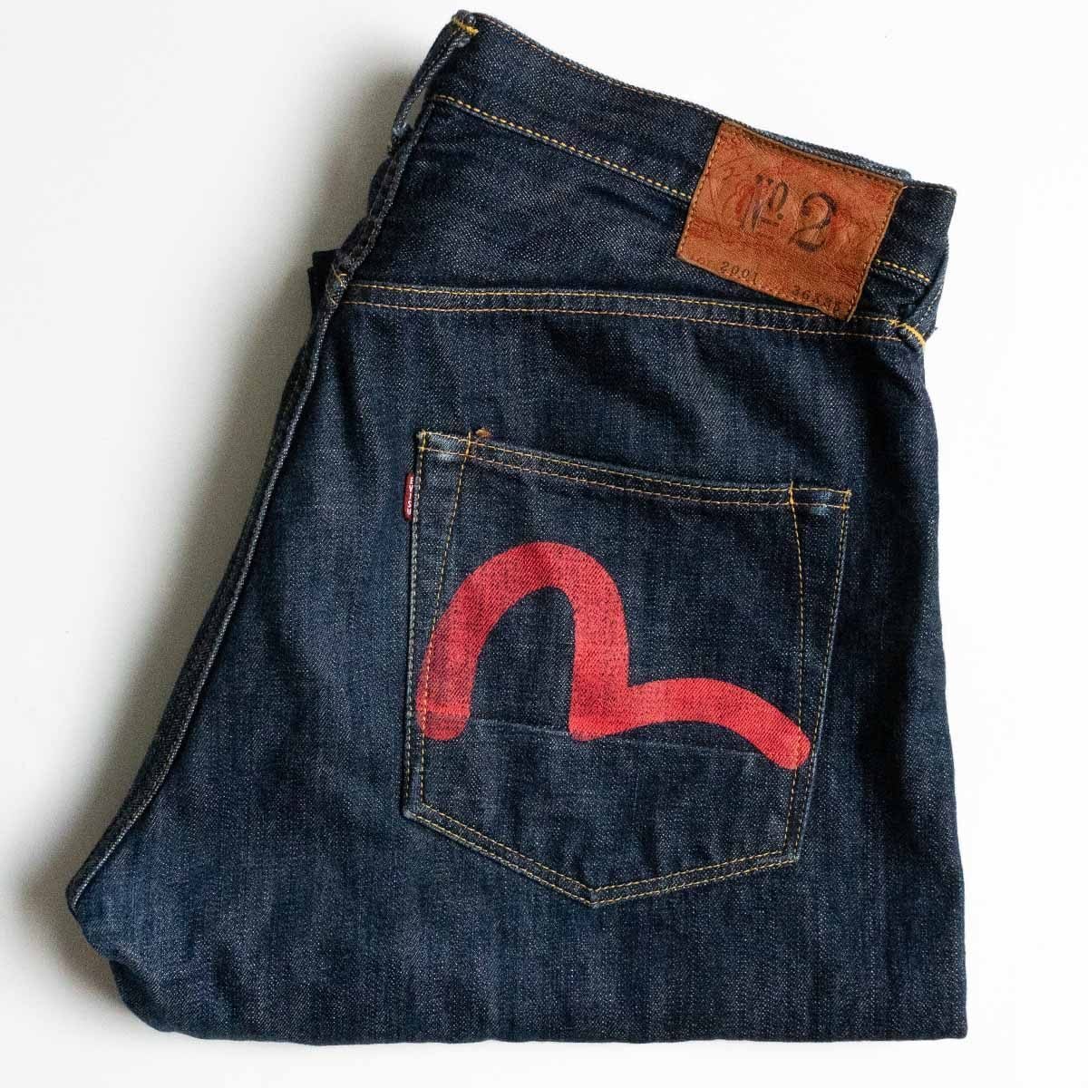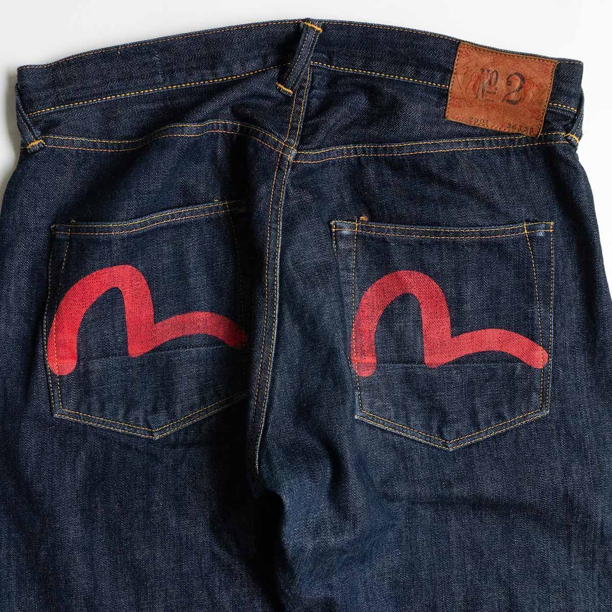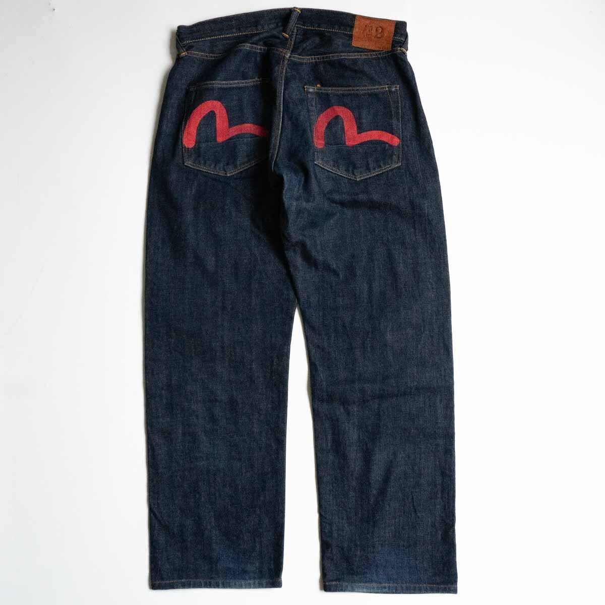 エヴィス定番のデニムパンツ。カモメペイントの色は光で飛んでいますが水色です。お探しの方や気になる方は是非。