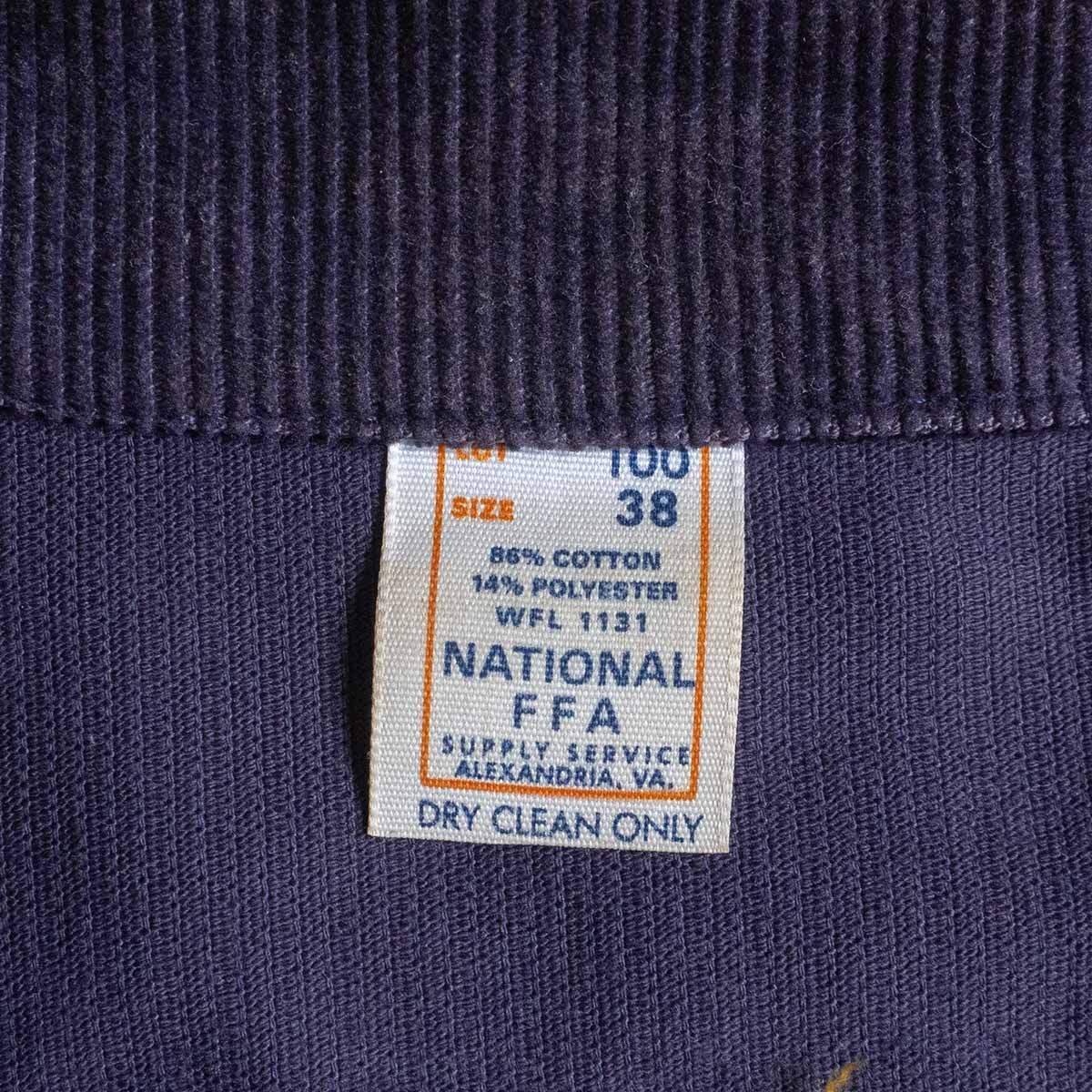 FFAとはFuture Farmars of Americaの頭文字をとった略称でアメリカ合衆国学校農業クラブ連盟のことを指します、『みんなでアメリカの農業の未来を考えていきましょう』という意味になります。その団体のユニフォームとして使用されていたのがこのFFAジャケットです。カラーは紺をベースに前後にはFFAのワッペン後ろにはワッペンの上に各州のチェーンステッチが入っています。お探しの方や気になる方は是非。