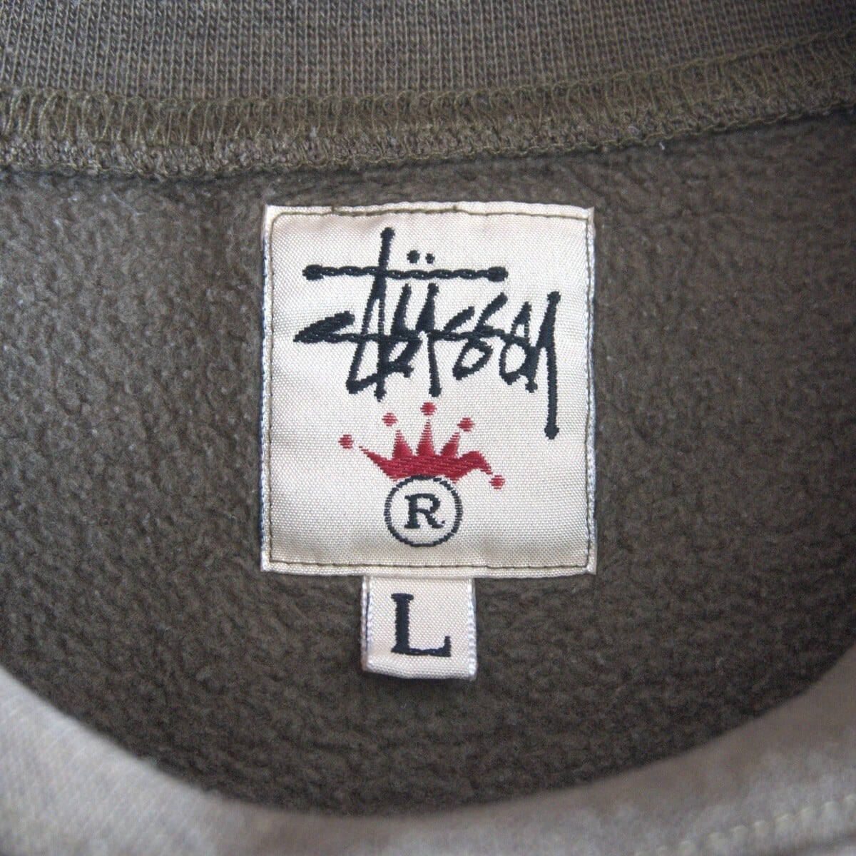 オールドステューシーの中でも希少な白タグのスウェットです。両面プリント、カーキカラーで雰囲気抜群です。年代特有の重すぎず、着やすい薄さの生地感も最高の1品。良いものをお探しの方は是非。