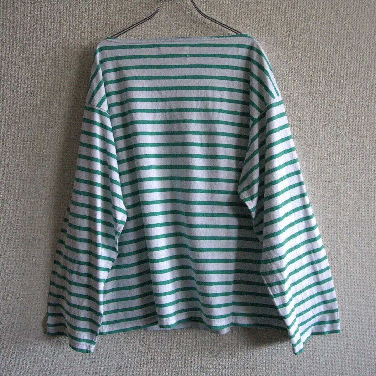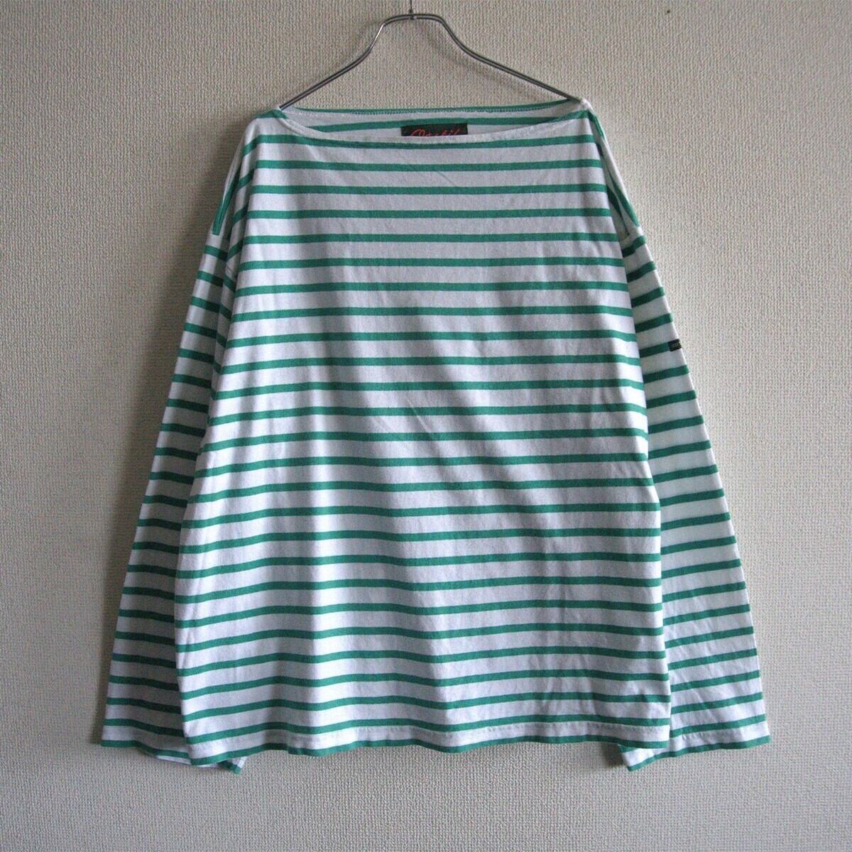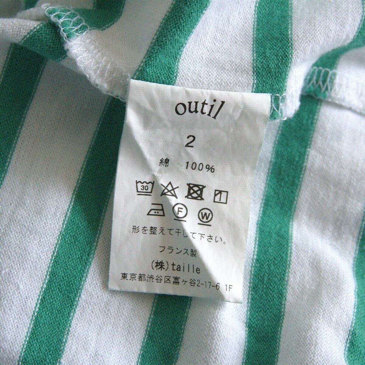 【美品】OUTIL【バスクシャツ】2 ボーダー カットソー ウティ グリーン 25070247