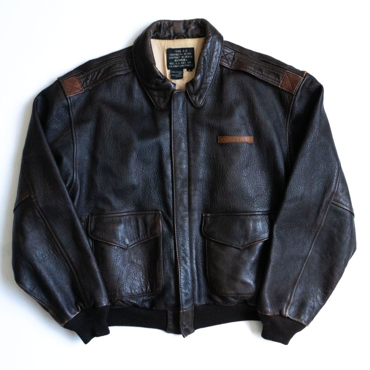 【雰囲気抜群】AVIREX【A-2 フライトジャケット】M ブラウン レザー アビレックス 25070228