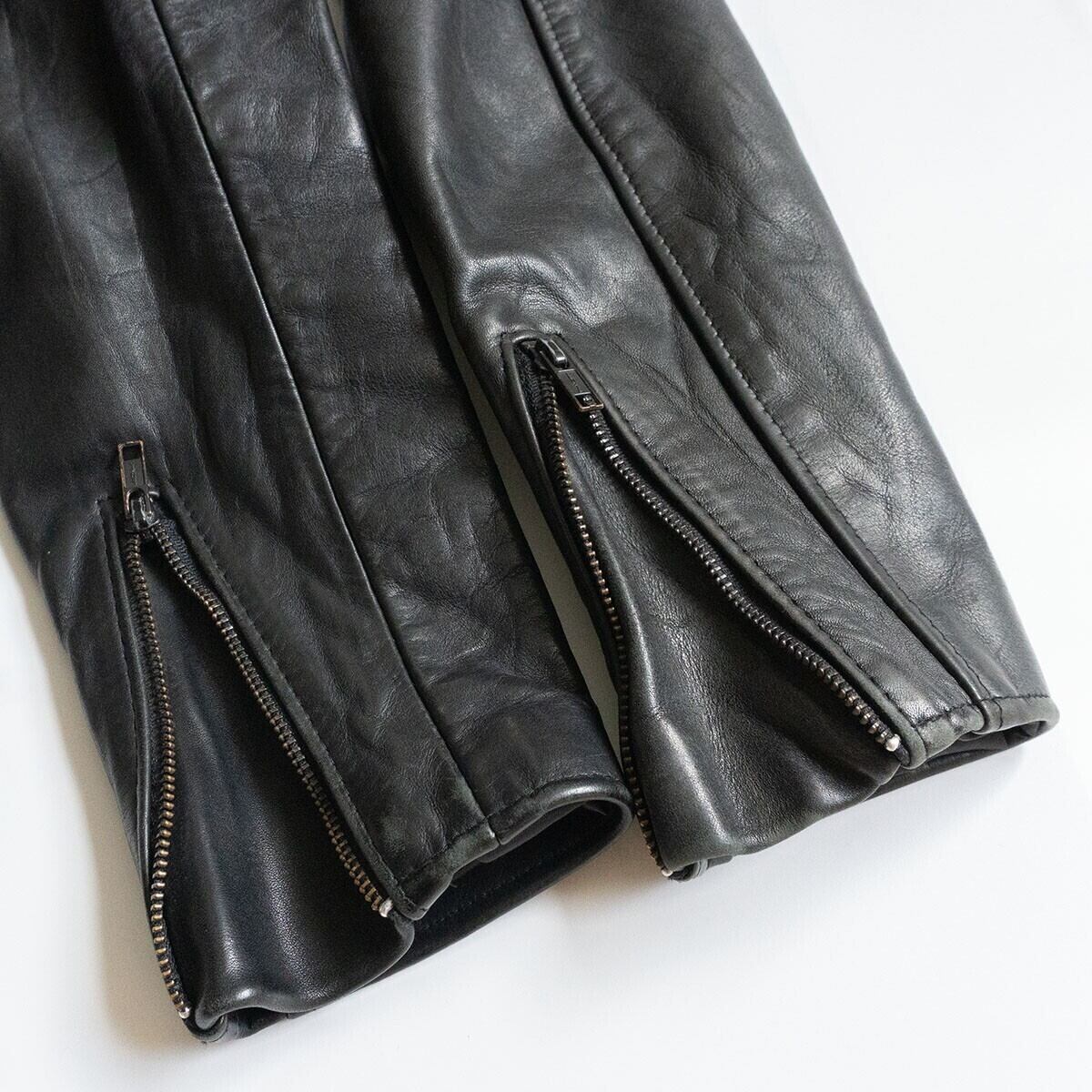 通常モデルに比べてシルエットが細身で裏地は中綿なしのブラックサテンです。バックルやジップパーツ、スターのスタッズなどの金属パーツが全てブラックですのでシックな雰囲気がございます。お探しの方や気になる方は是非。