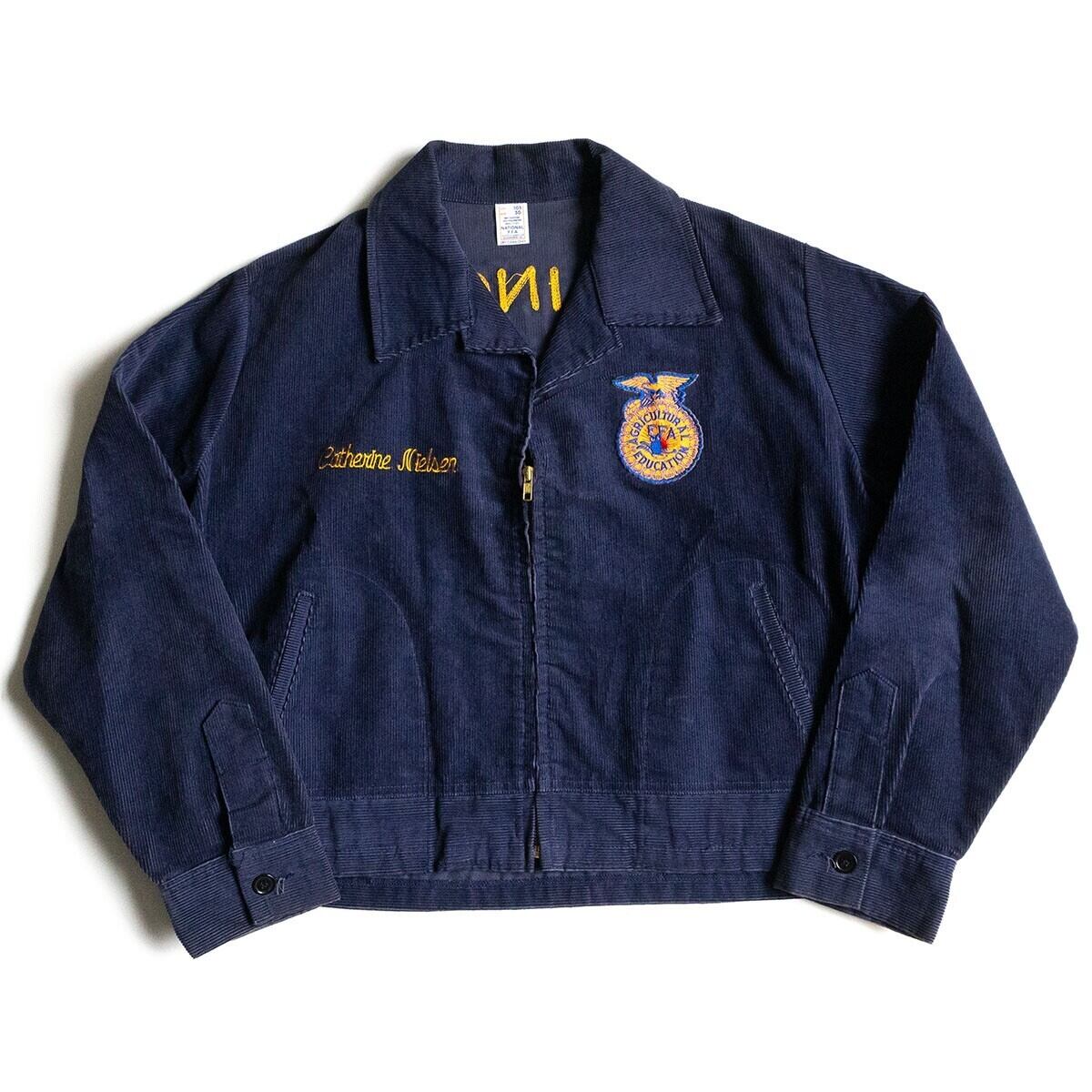 FFAとはFuture Farmars of Americaの頭文字をとった略称でアメリカ合衆国学校農業クラブ連盟のことを指します、『みんなでアメリカの農業の未来を考えていきましょう』という意味になります。その団体のユニフォームとして使用されていたのがこのFFAジャケットです。カラーは紺をベースに前後にはFFAのワッペン後ろにはワッペンの上に各州のチェーンステッチが入っています。お探しの方や気になる方は是非。