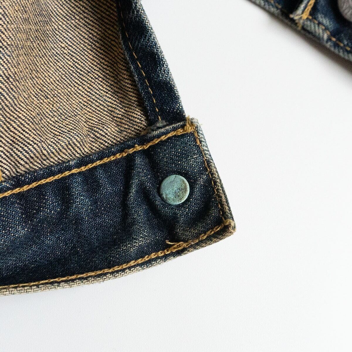 中古品でございます。着用感や色落ちがございます。袖ボタンのリベットに錆がございます。神経質な方はお控え下さい。