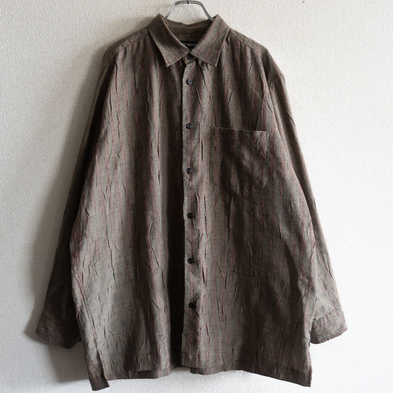 【雰囲気抜群】ISSEY MIYAKE 【シワ加工 ストライプ シャツ】 4 イッセイミヤケ 25070383