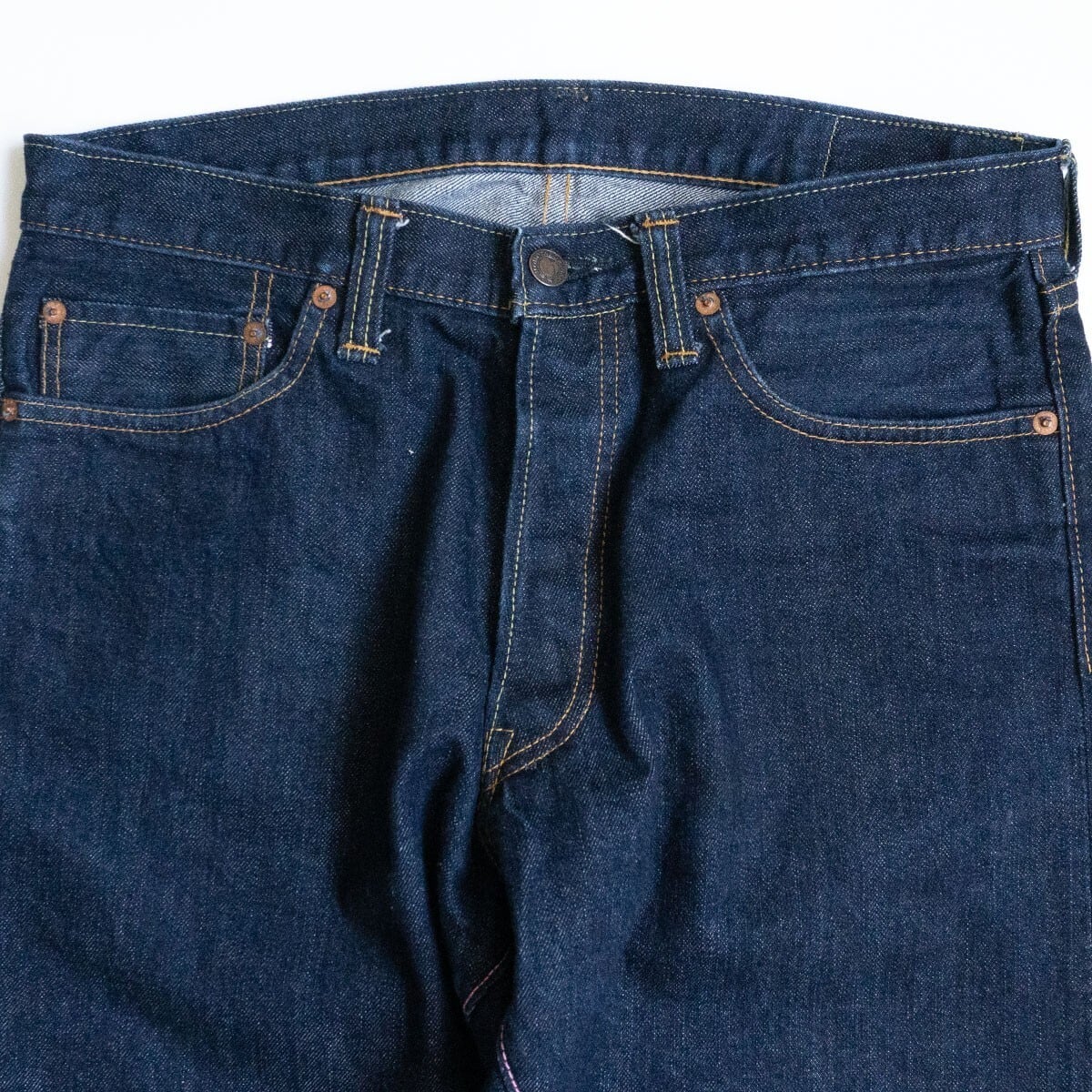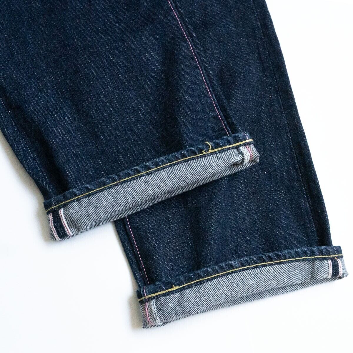 ロープ染色を繰り返し特濃インディゴブルーに染めたジンバブエコットン使用した1本。クラシカルなゆったりシルエットです。希少な海外モデルです。これから経年変化をお楽しみいただけます。