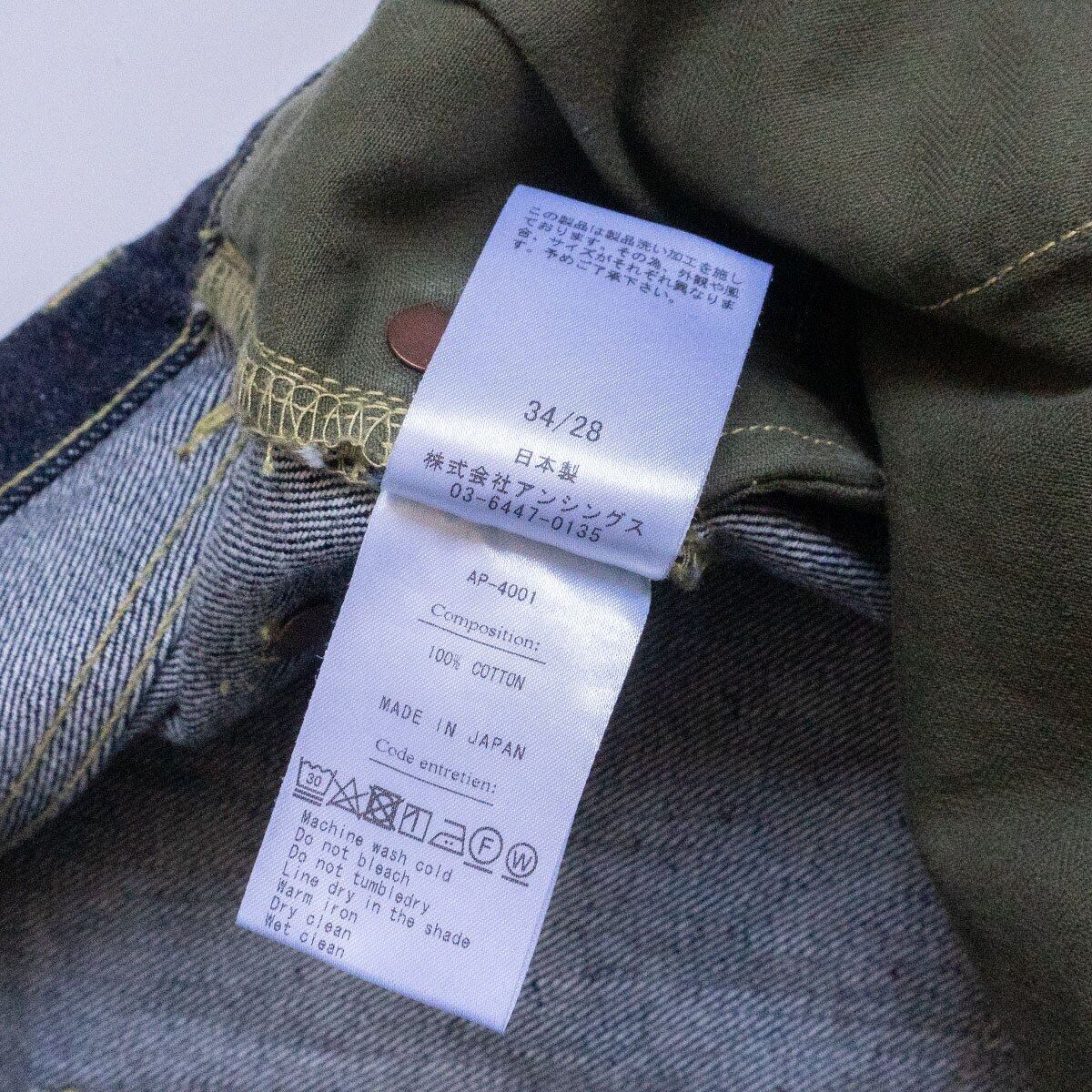美品でございます。左腿付近にステッチ抜けのような線が入っています。素材特有の色ムラ、風合い等ございます。神経質な方はお控え下さい。
