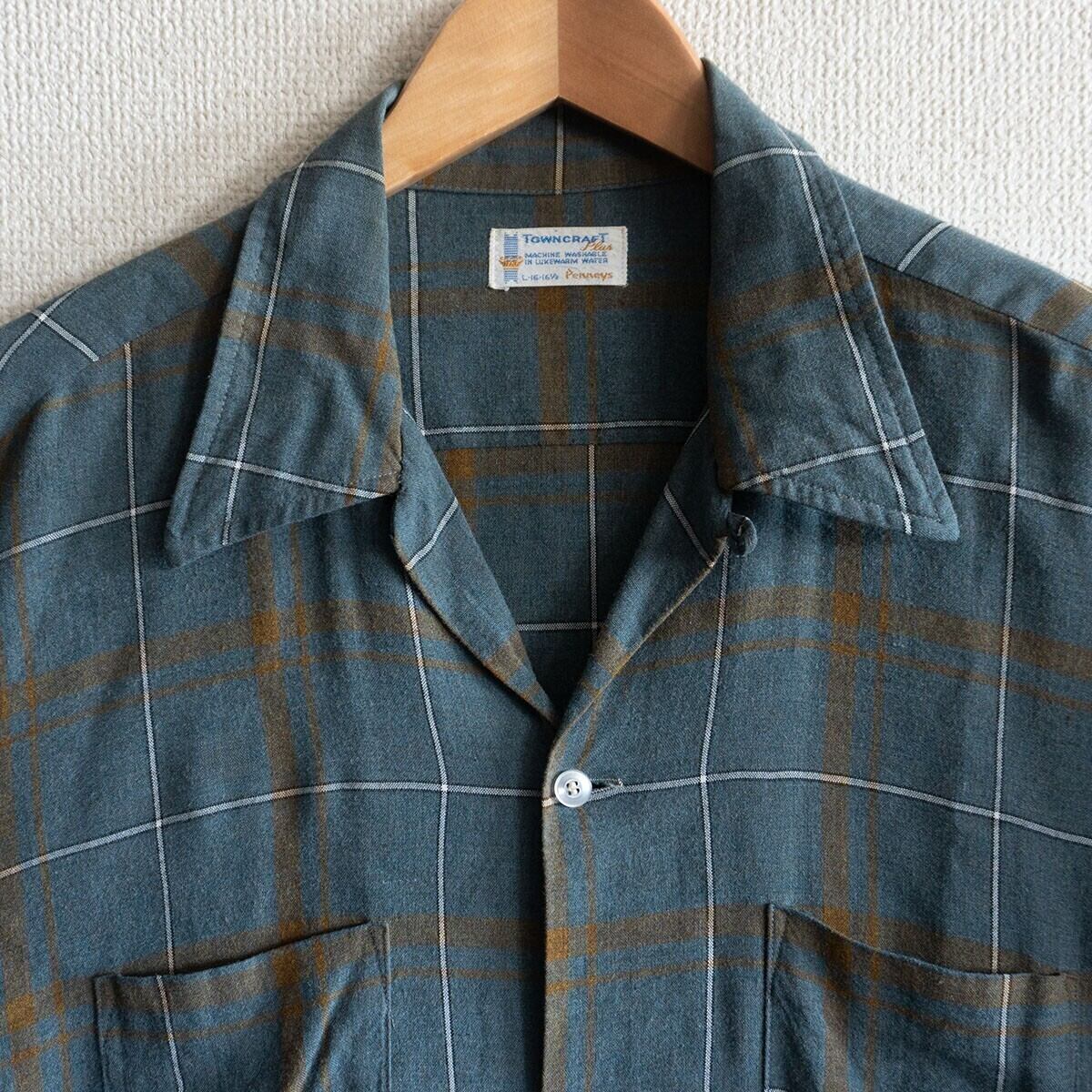 【60s/ヴィンテージ】TOWNCRAFT【オープンカラー レーヨン チェック シャツ】L 16-16 1/2 ボックスシルエット タウンクラフト25070474