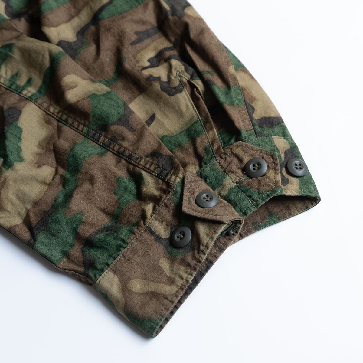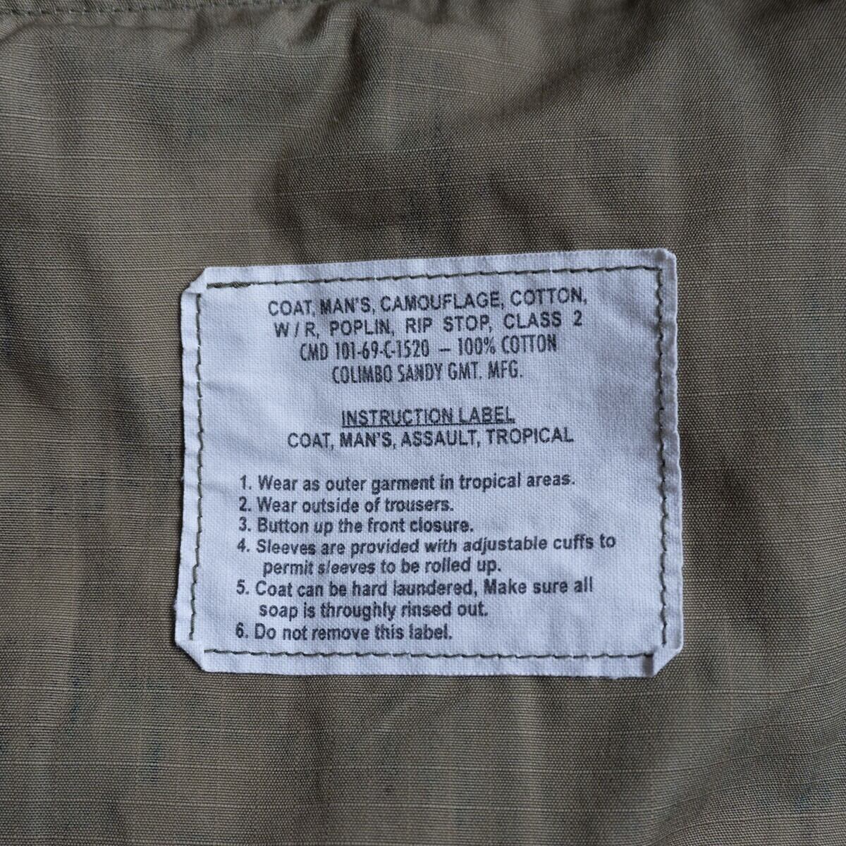 米陸海空及び海兵隊共通で使用された亜熱帯から熱帯での戦闘をカバーする野戦服で、俗にいうジャングル・ファティーグがベースの軽量アウター。デザインのルーツはWW2で使用されたエアボーンジャケットとも言われる。同ジャケットの機能性に加えてトロピカルゾーンでのサバイバビティを盛り込んだディティールが特徴。お探しの方は是非。