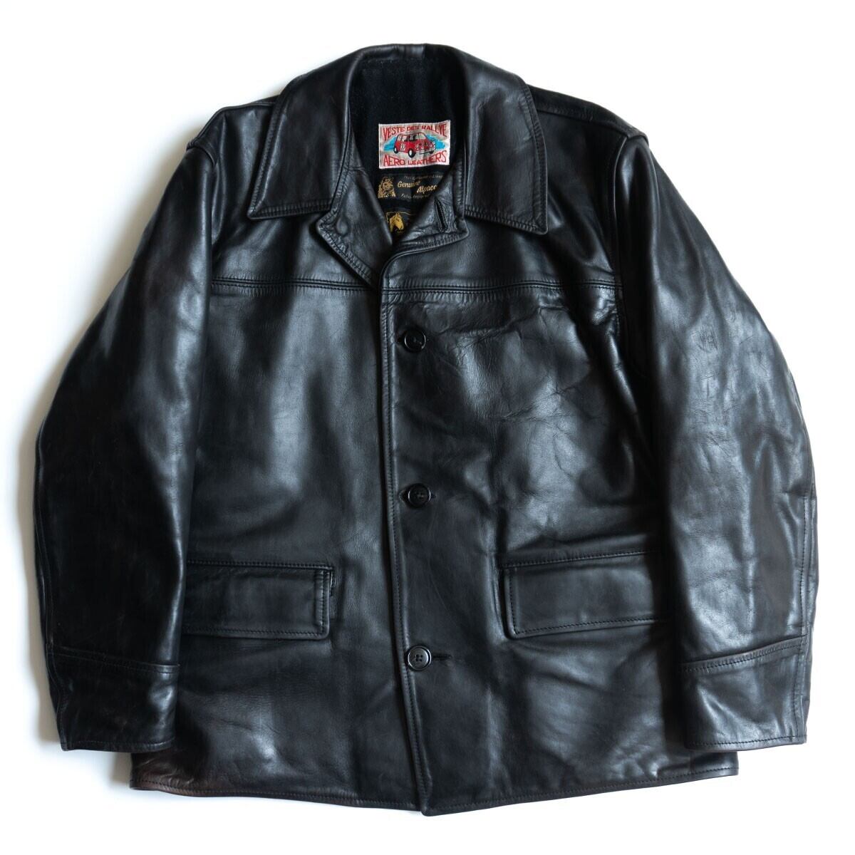 【雰囲気抜群】AERO LEATHER【ホースハイド レザー カーコート】40 ブラック エアロレザー 25070749