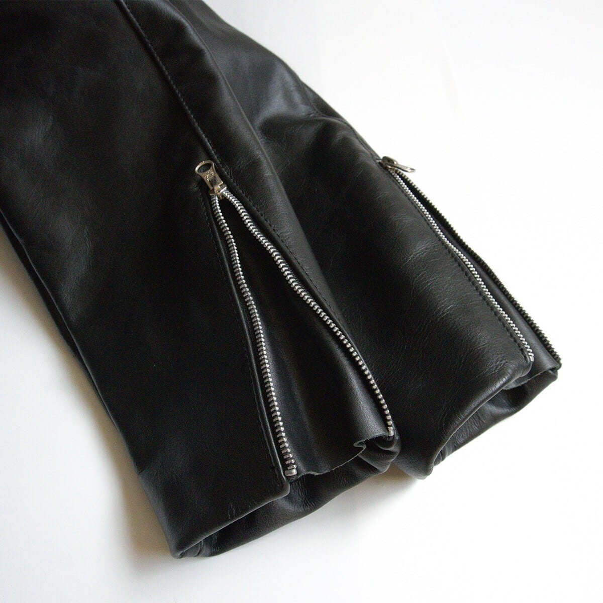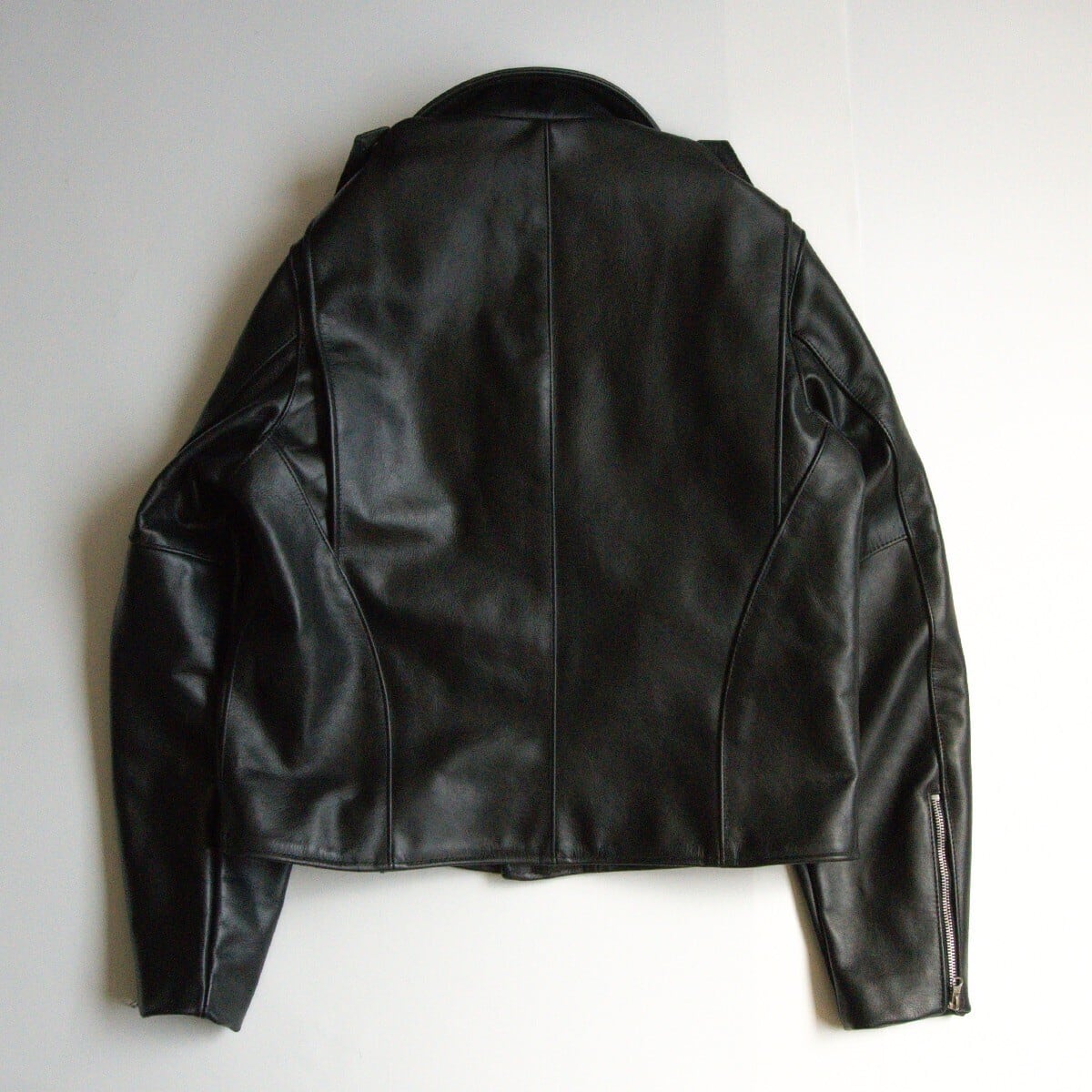 スキニアーと呼ばれるタイトなフィットで、よりスタイリッシュなシルエット。また、バンソンの革と言えば堅牢なクロームレザーが定番ですが、こちらは革本来の質感が楽しめる植物タンニンのソフトカウレザーを採用。肉厚ながらもキメ細かく柔らかなシボ革ですんなりと体に馴染みます。お探しの方や気になる方は是非。