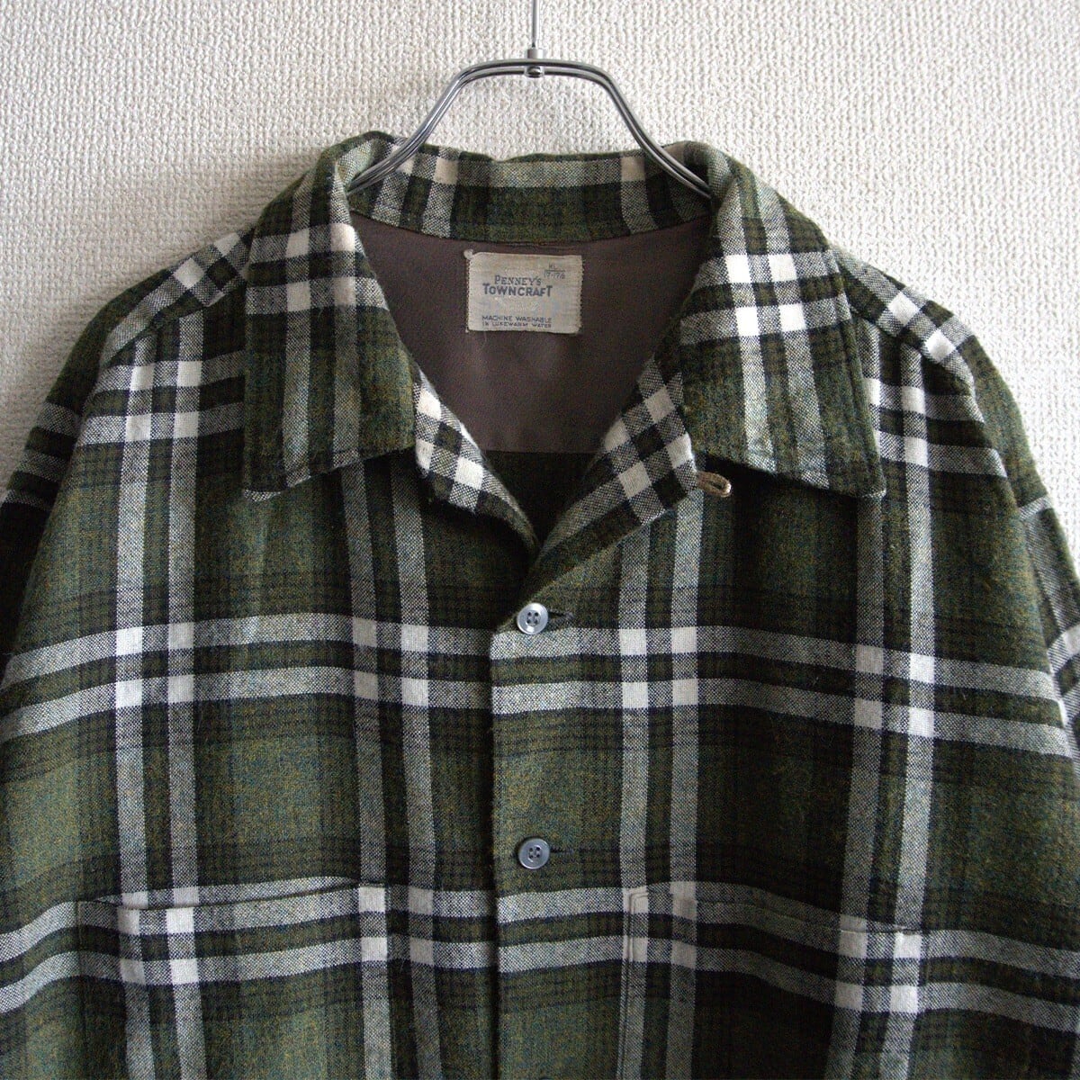【60s/ビッグサイズ】TOWNCRAFT【オープンカラー ウールチェックシャツ】XL 17-17 1/2 ヴィンテージ タウンクラフト 25070781