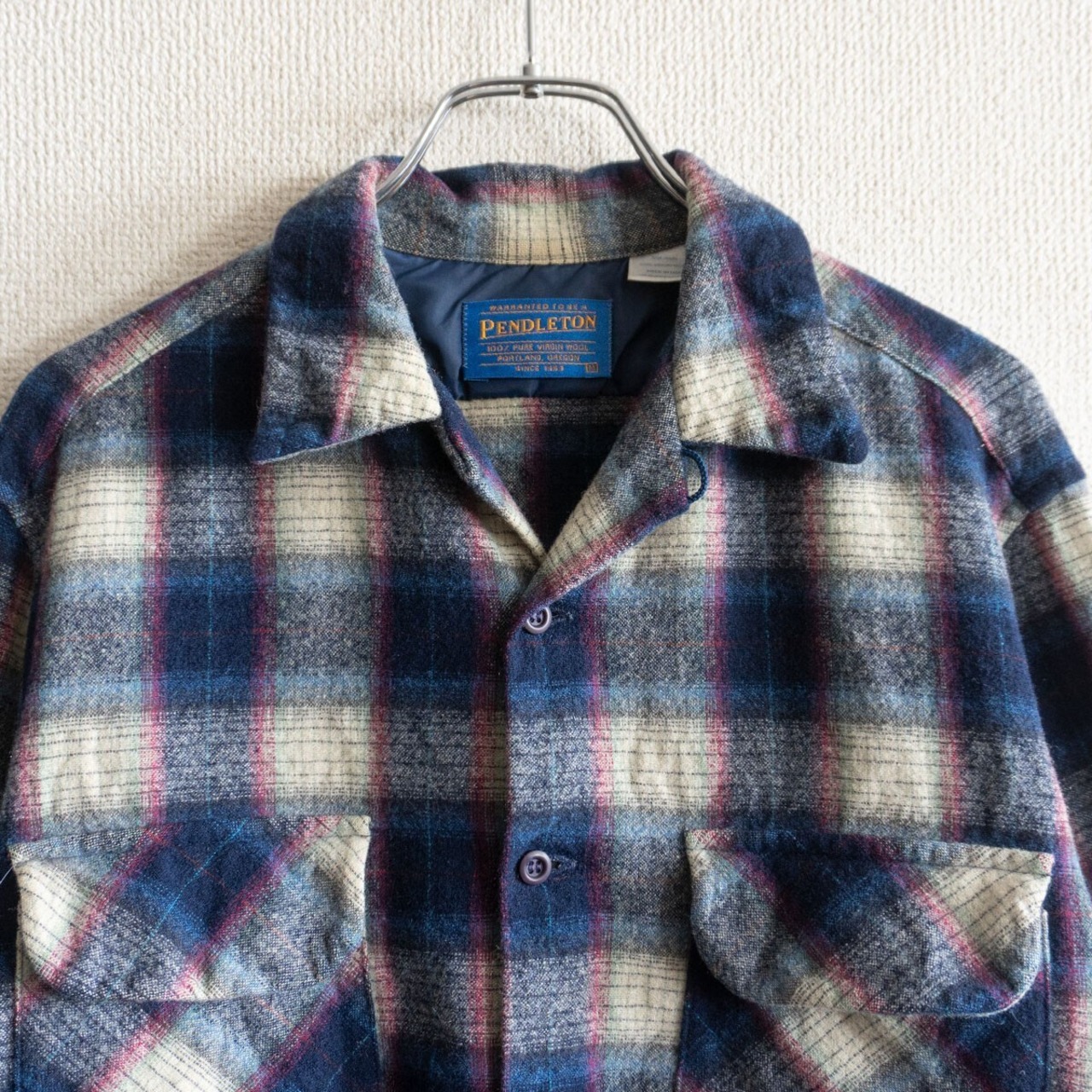 【USA製/90s】PENDLETON【ボックスシルエット オンブレチェック オープンカラー シャツ】ウール ペンドルトン 25080043