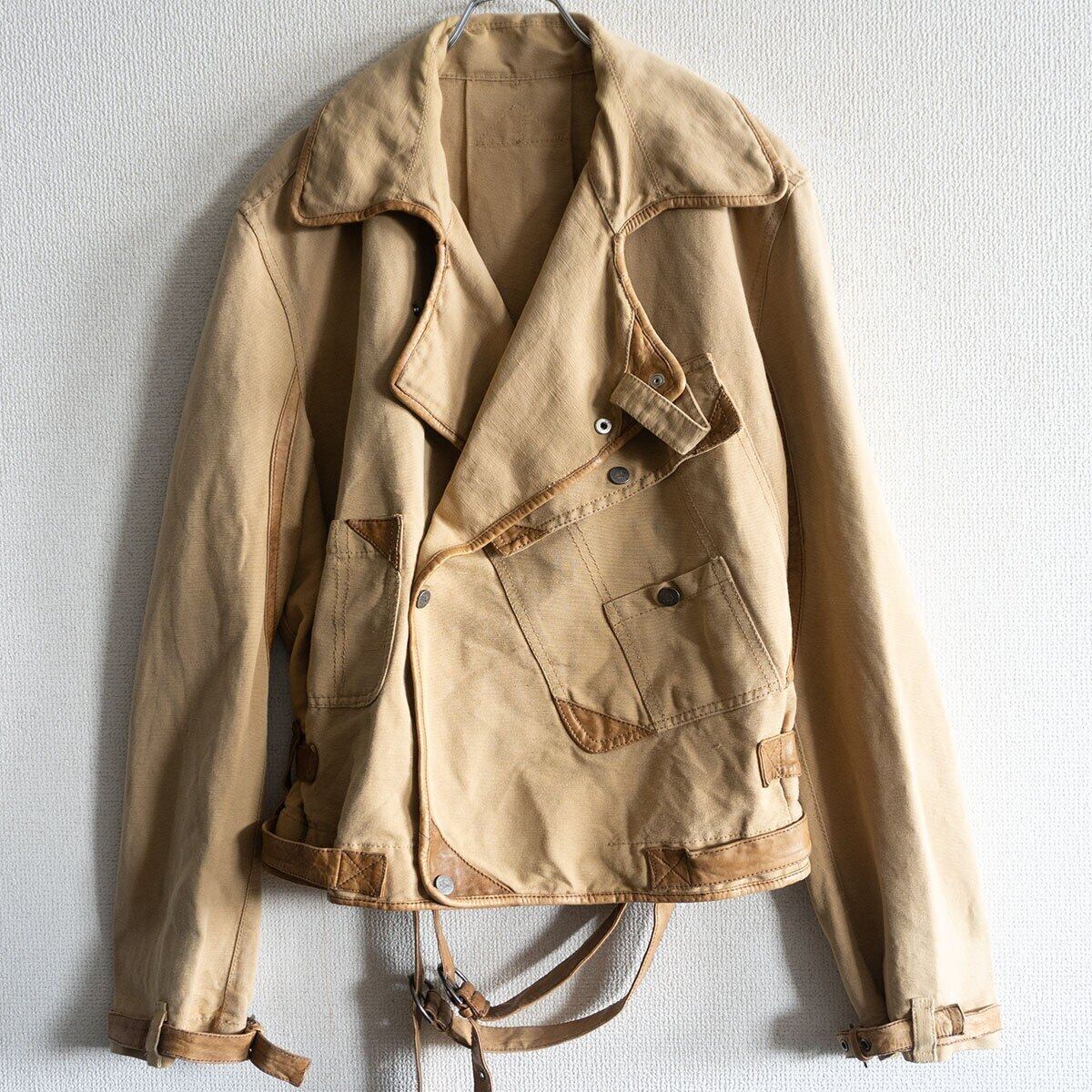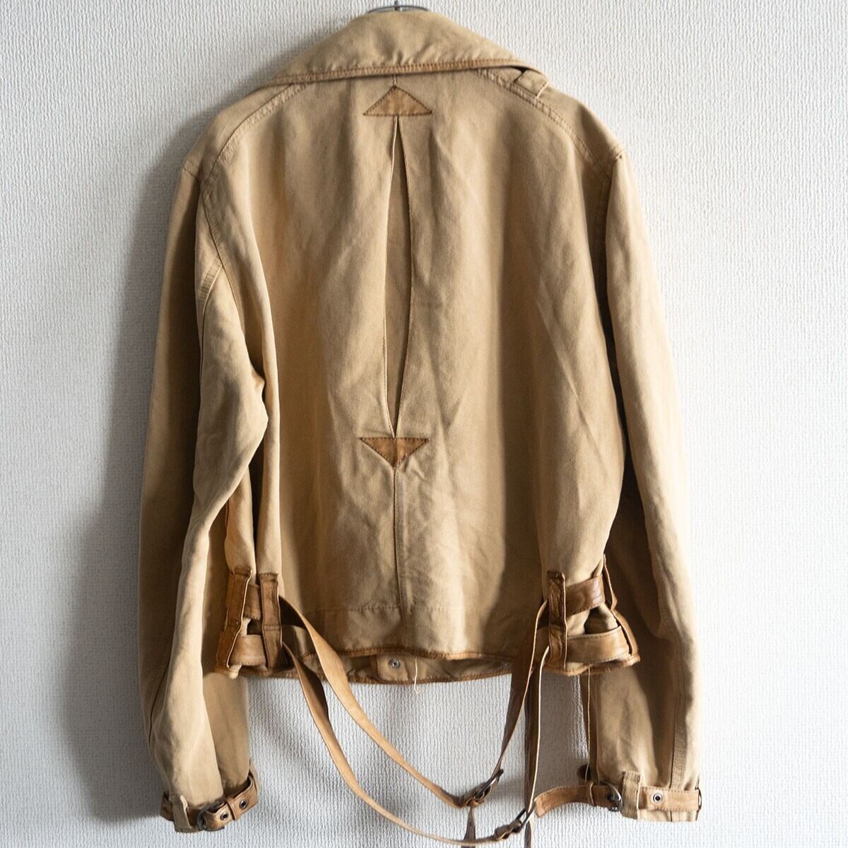 ヨーロッパのモーターサイクルコートをサンプリングしたショート丈のジャケットです。素材はコットンリネン素材です。お探しの方や気になる方は是非。