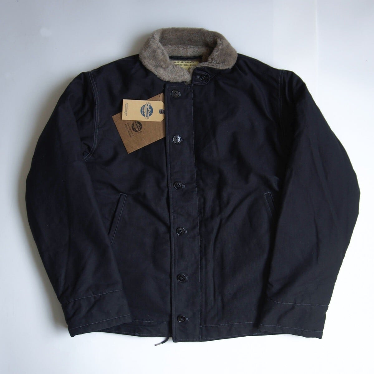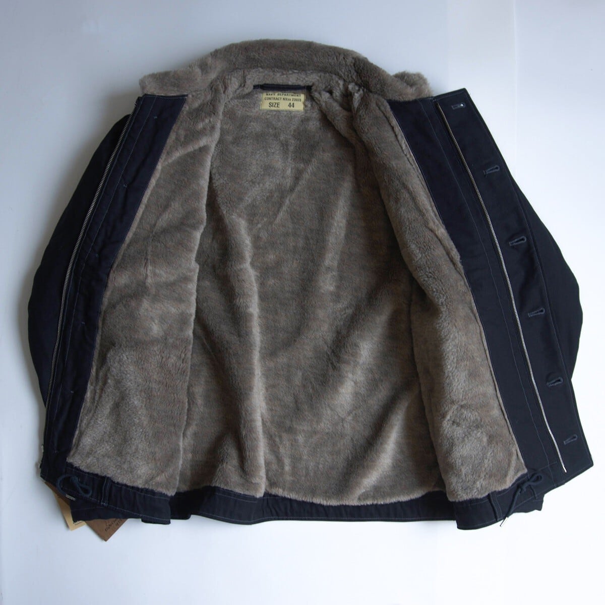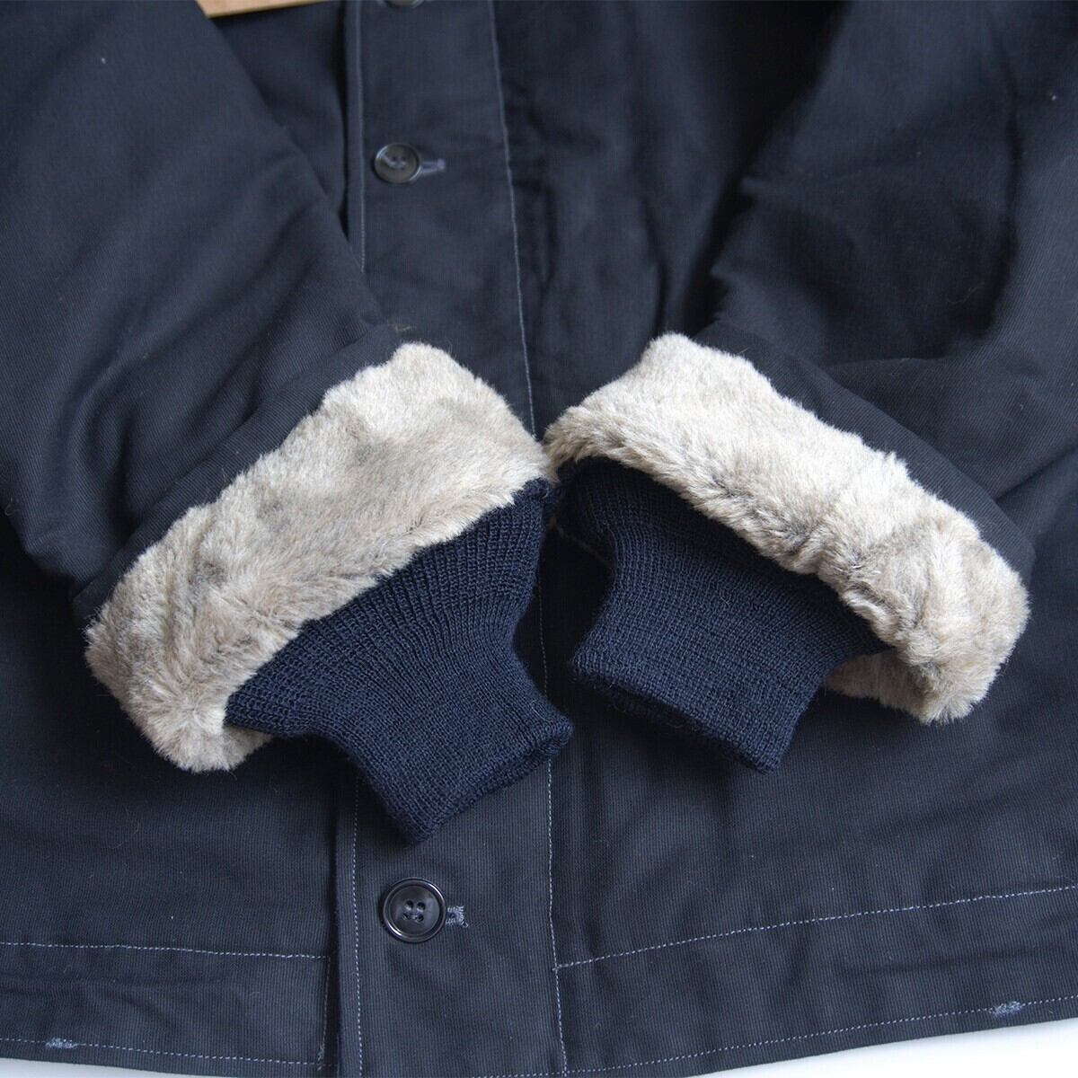 第二次世界大戦から朝鮮戦争にかけ米海軍の艦艇乗員用として採用されたN-1デッキジャケット。こちらの表素材には他のデッキジャケットと同様で通称"ジャングルクロス"と呼ばれるコットングログランが使用され、裏地には遮風性と保温性に優れたアルパカ・コットン・ウールパイルが使用されています。防寒性抜群の1着です。お探しの方や気になる方は是非。