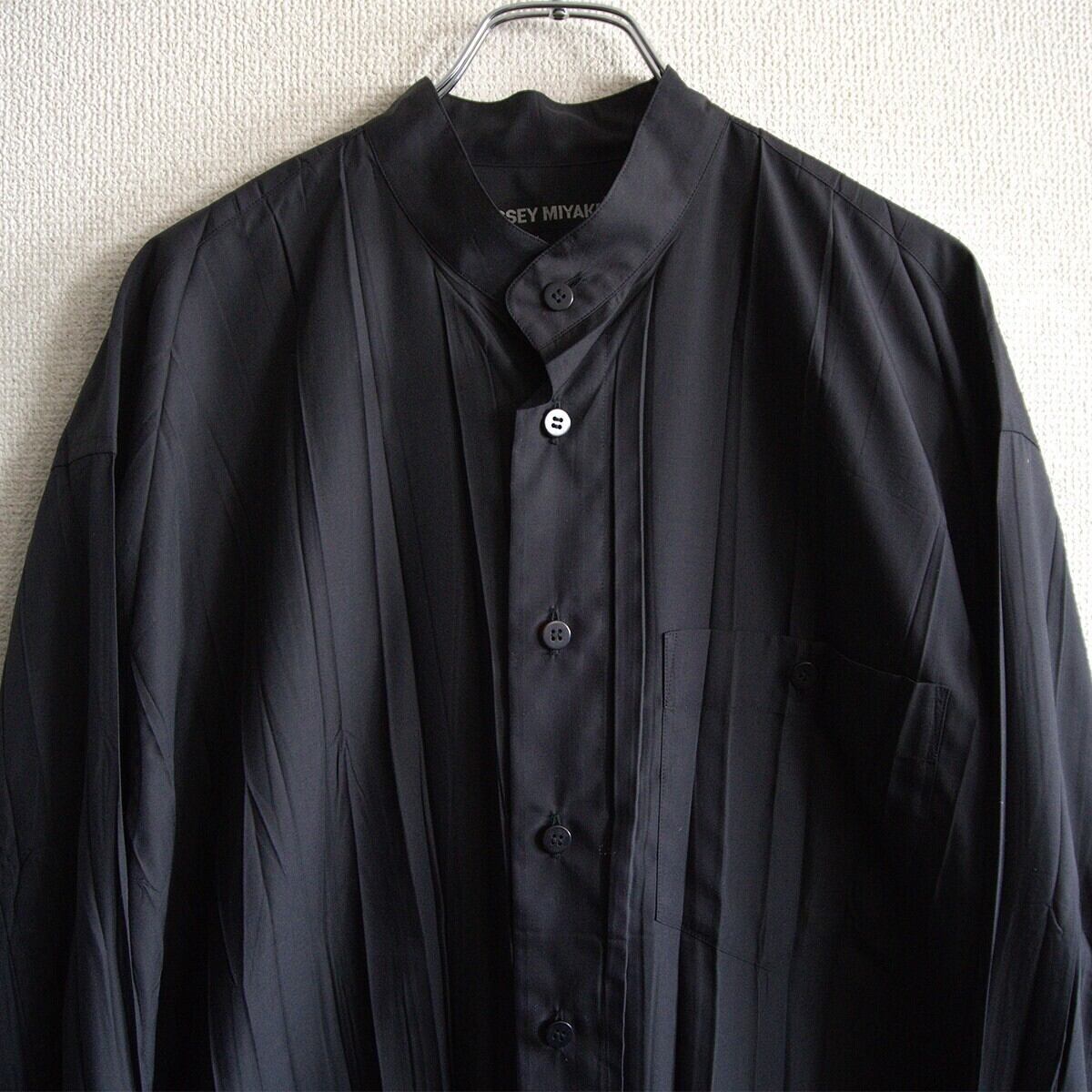 【美品】ISSEY MIYAKE 【プリーツ加工 オーバーシルエット シャツ】 1 ボックスシルエット ブラック イッセイミヤケ 25080032