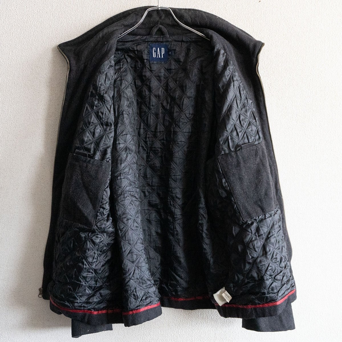 ウール素材を使用したジップアップジャケット。内側はキルティングになっています。良いものをお探しの方は是非。