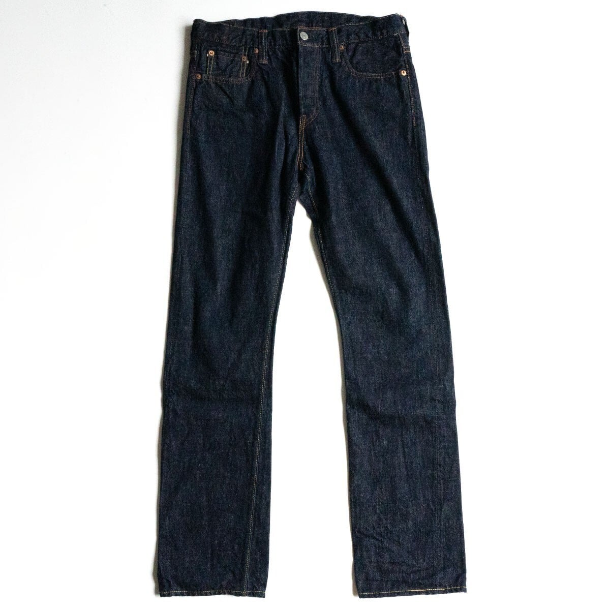 脚から膝にかけて細くなり、裾に向かって真っ直ぐ落ちるラインが特徴的な一本です。これから経年変化をお楽しみいただけます。お探しの方や気になる方は是非。