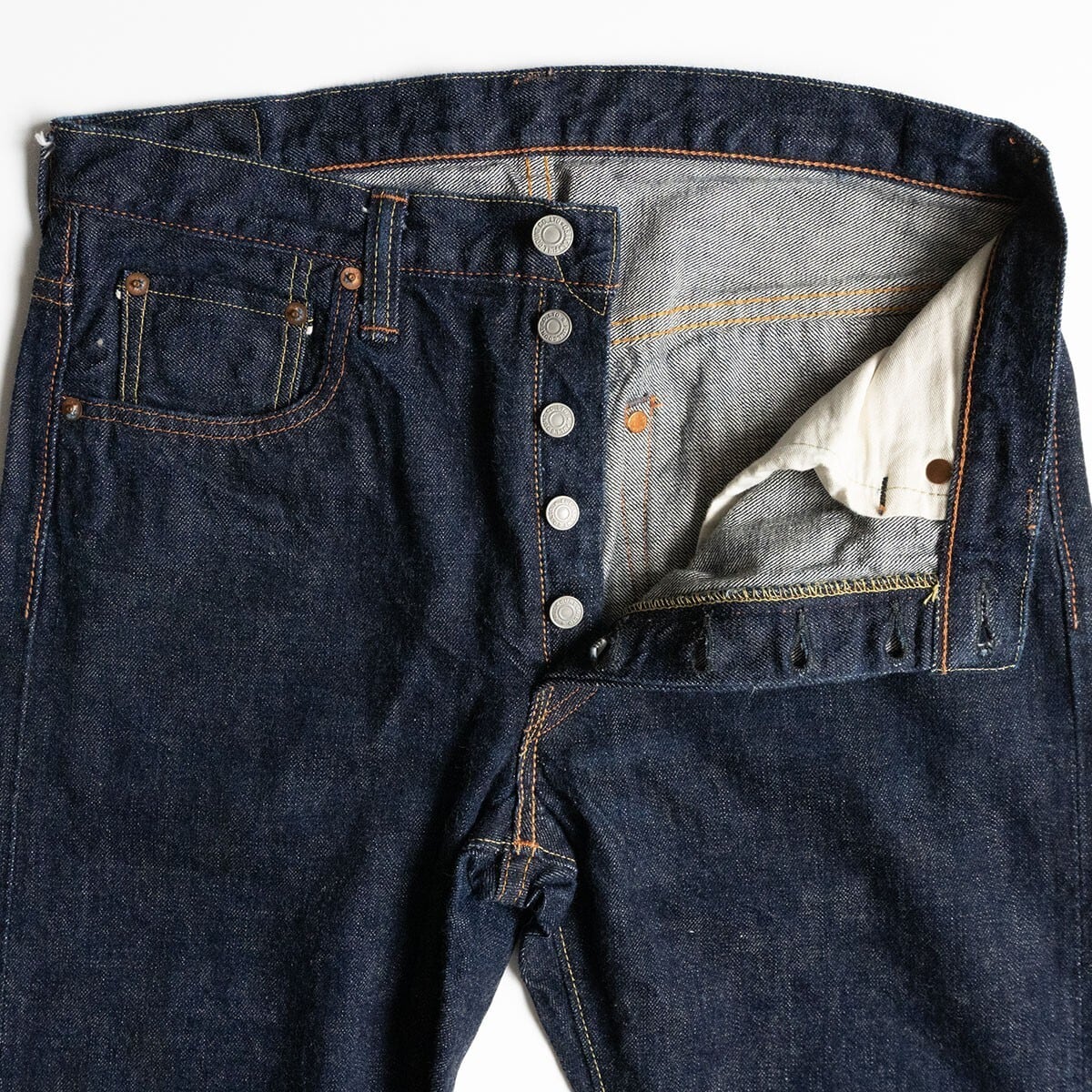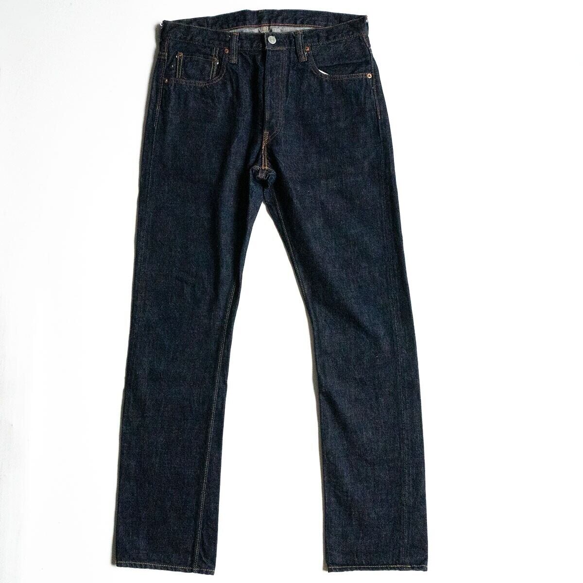 脚から膝にかけて細くなり、裾に向かって真っ直ぐ落ちるラインが特徴的な一本です。これから経年変化をお楽しみいただけます。お探しの方や気になる方は是非。