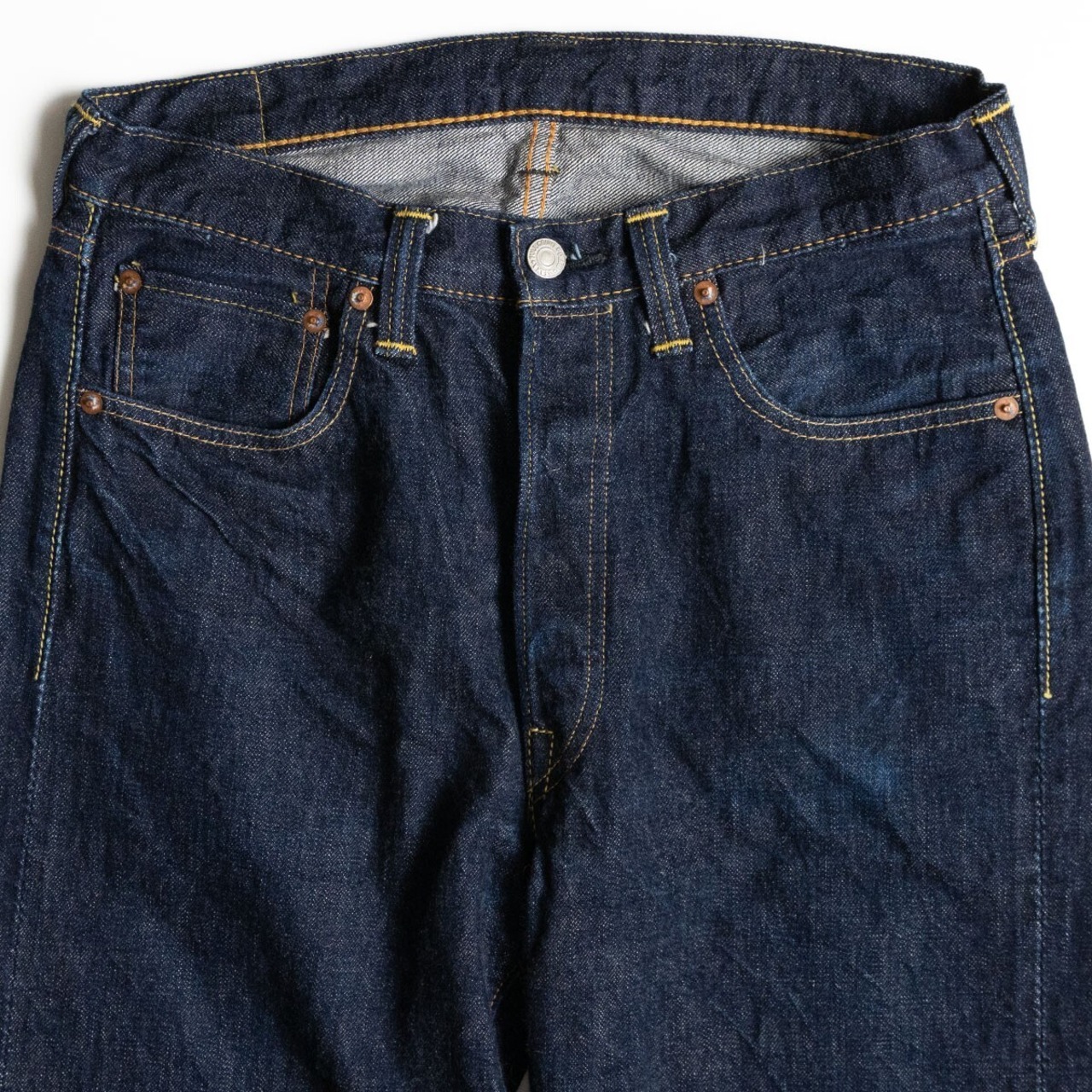 ややワイド なサイズ感で、股上も深くなり穿きやすさとシルエットの良さに定評のある定番の1本。これから経年変化をお楽しみいただけます。お探しの方や気になる方は是非。
