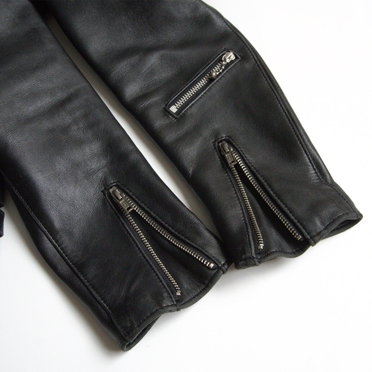 【雰囲気抜群】666 triple six【シープスキン UK サイドベルト ダブル ライダースジャケット】38 レザー トリプルシックス 25080132