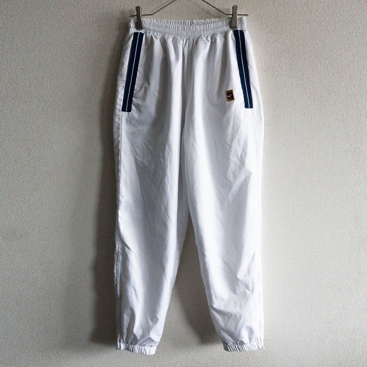 【90s】NIKE【ナイロン トラック パンツ】S ナイキ ホワイト 銀タグ 古着 25080247