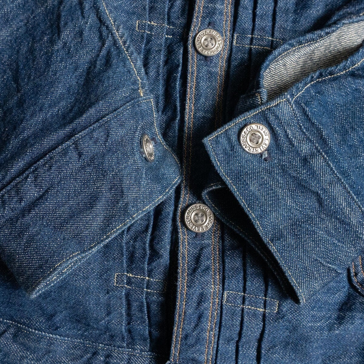 最初期のデニムジャケットが元になっています。正統なウェスタン作業着として、サンフランシスコのLevi'sアーカイブにも展示されています。名前の元になったのは、前立ての両側にある3本のプリーツです。このプリーツは、もともと糸を切ればサイズを大きくできるように設計されたものでした。オリジナルに忠実なボクシーなクロップフィット。縫いつけられた金属製のブランドボタン、下が丸みを帯びた大きなハンドポケット、ウエストバンドにレザーパッチがついたシンチバックなどの独特な特徴があります。お探しの方や気になる方は是非。