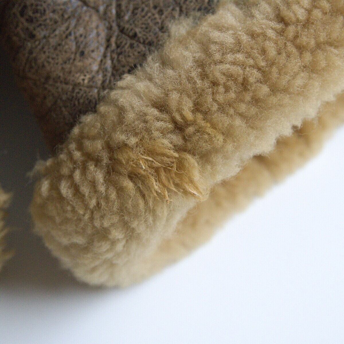 ボディには肉厚ながらモチっとした弾力性を持つ上質のシープスキン(羊革)が使用されております。裏地にはふかふかのムートンボアが敷き詰められ最高の着心地・防寒性を誇ります。