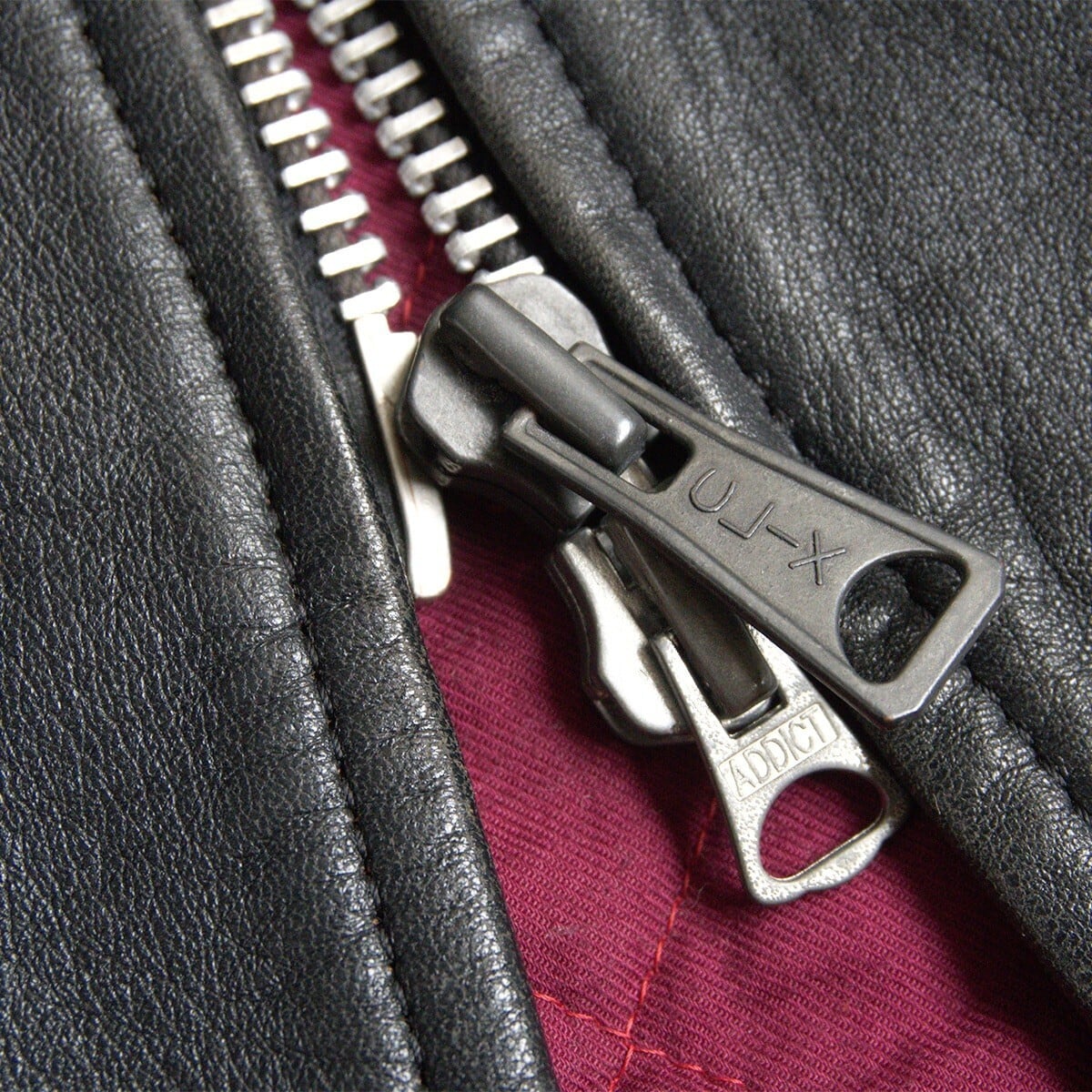 1960年代のロッカーズムーブメント時にイギリスで流行したレザーコートがモチーフですが、各所を再構築し、革はADDICT CLOTHESオリジナルレシピで作成した、革のカシミアと呼ばれるディアスキンを使用しています。フロントジッパーはCLIXとADDICTのダブルジップ仕様。ワンタッチでベルトのバックルを外すことができる特別なアタッチメントが付属、これによりグローブを使たままでもベルトが容易に外すことが可能です。お色はブラックです。お探しの方や気になる方は是非。