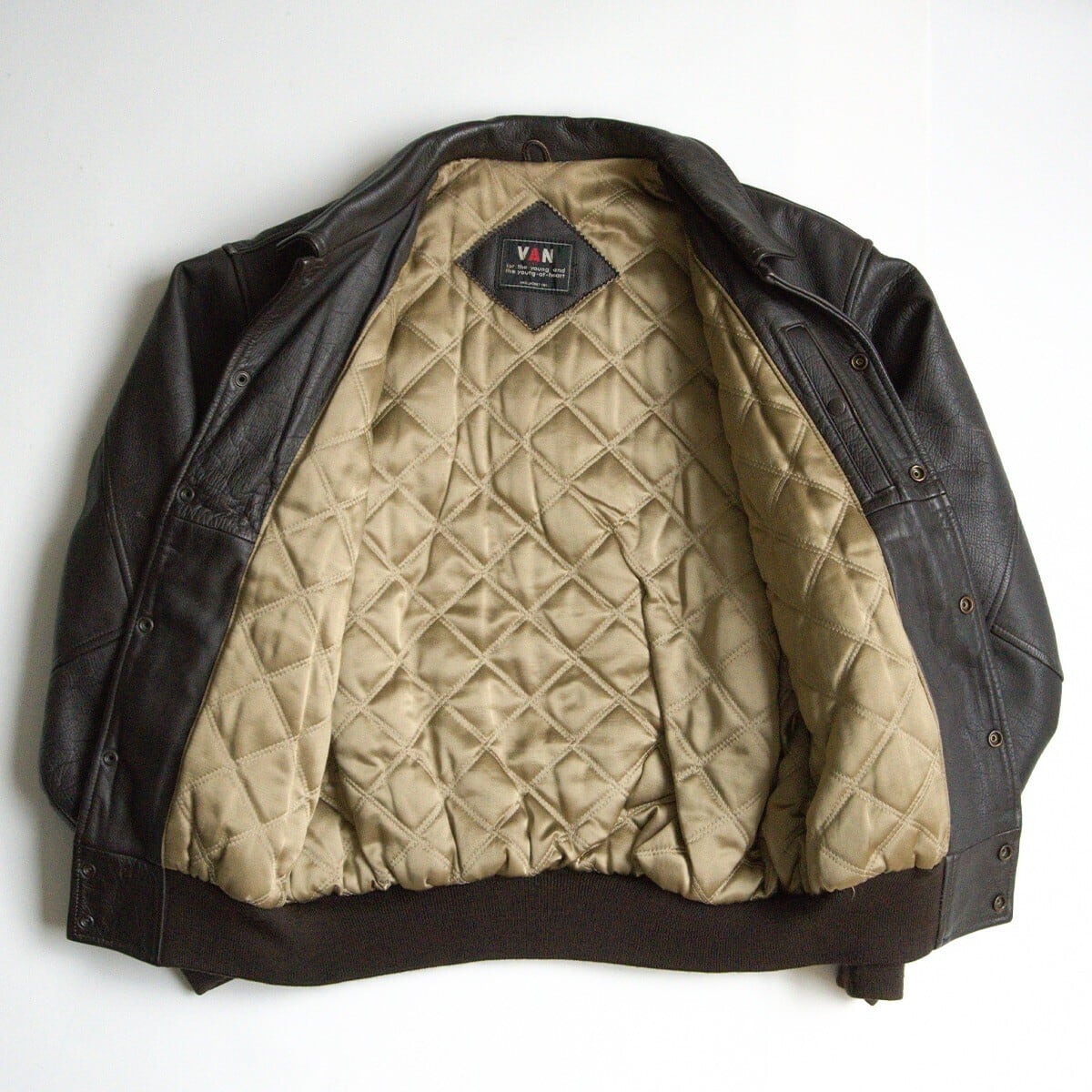 【美品】VAN JAC【オールレザー スタジャン】L ヴァン ワッペン スタジアムジャンパー 25080309