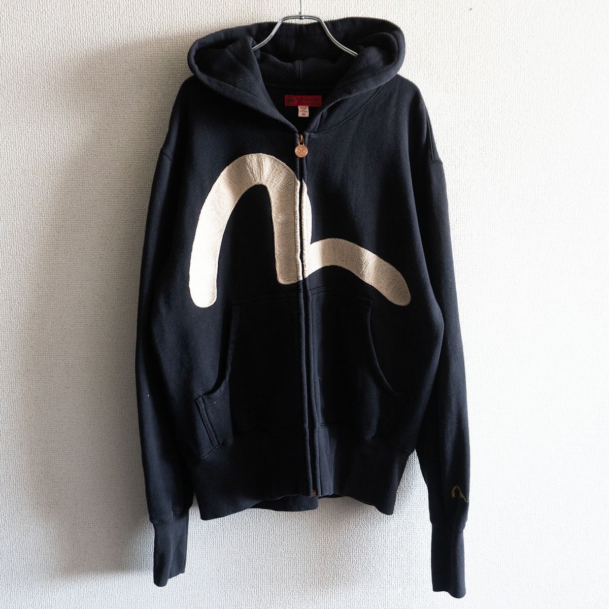【美品】EVISU【刺繍ロゴ ジップ パーカー】40 ブラック カモメ エヴィス 25080378