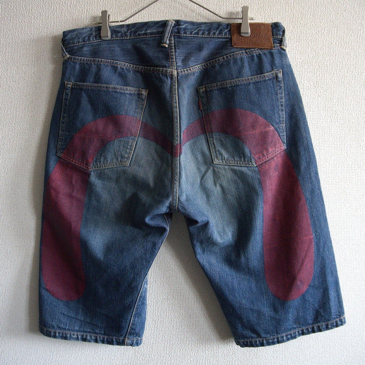 【雰囲気抜群】EVISU 【ビッグカモメ ショート デニム パンツ】38 エヴィス ジーンズ 25080434