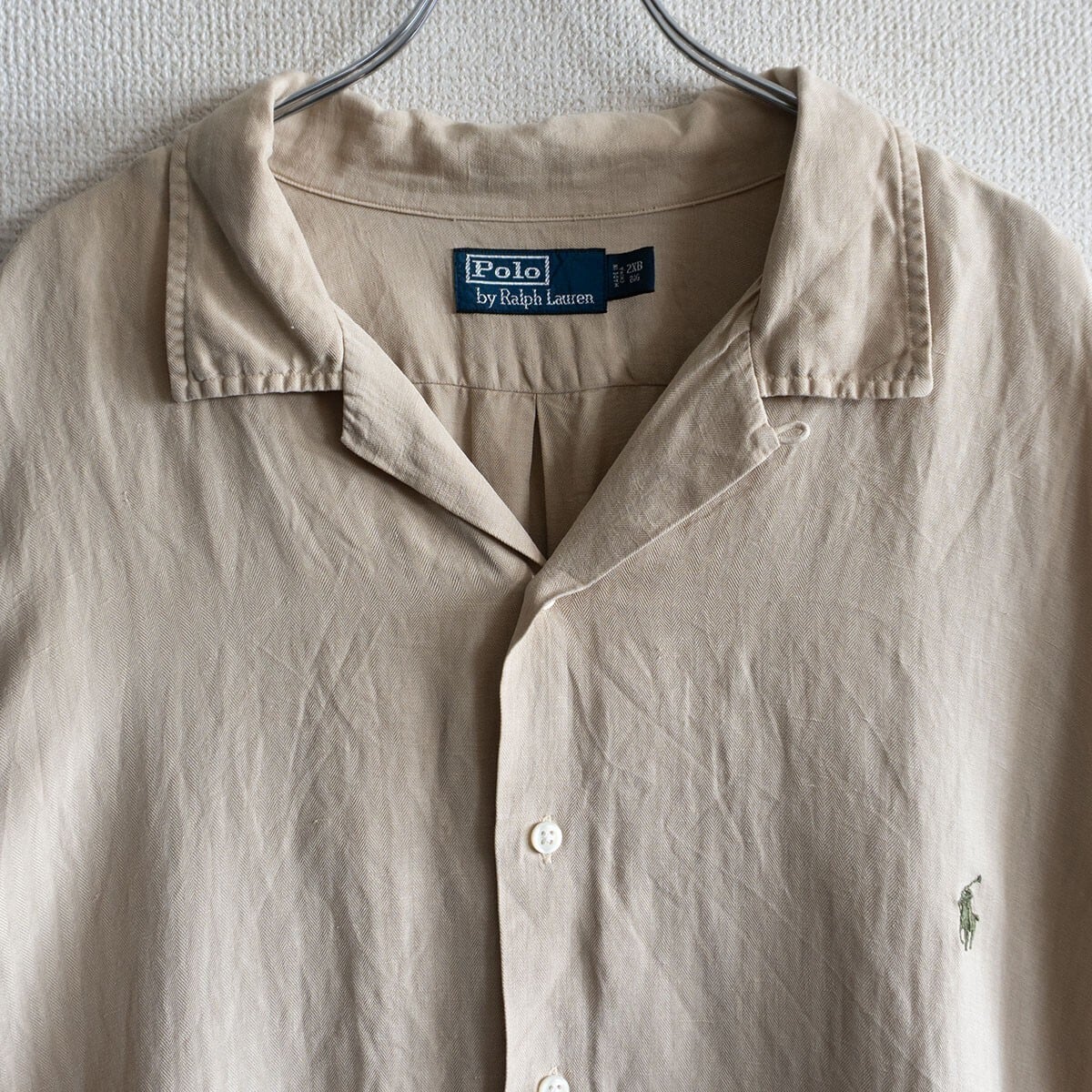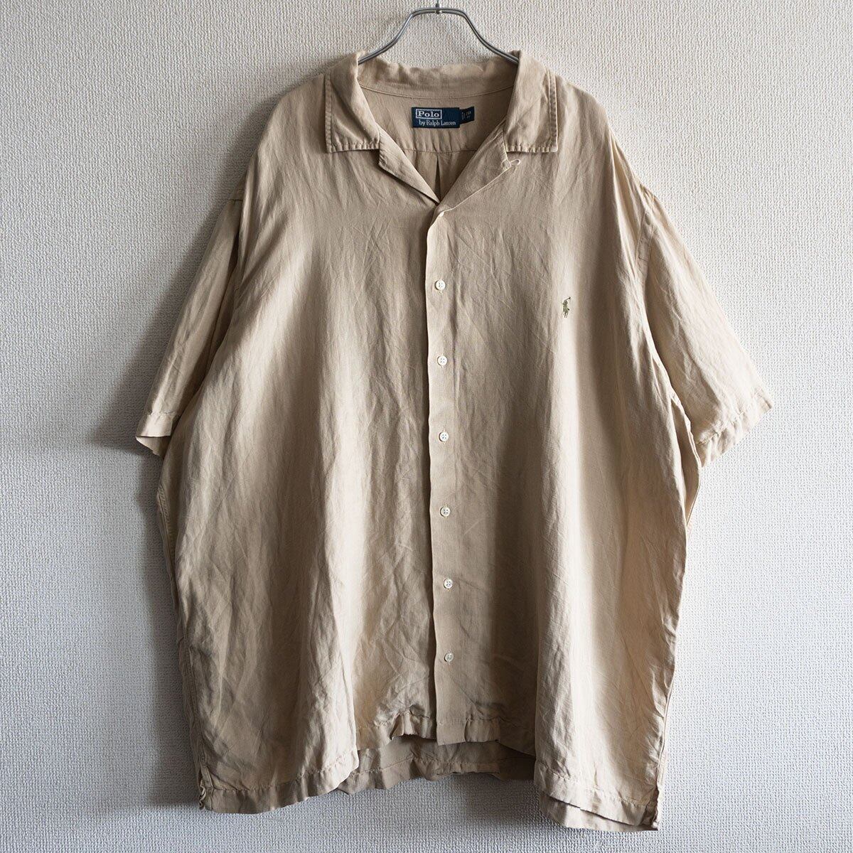 【美品】POLO RALPH LAUREN 【シルク リネン オープンカラー シャツ】2XB ポロラルフローレン 裾ポニー 開襟 25080442