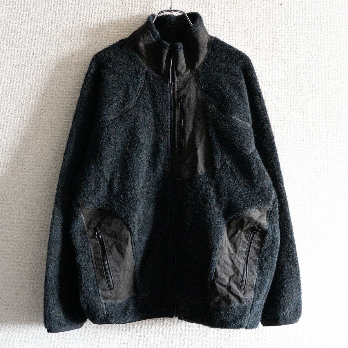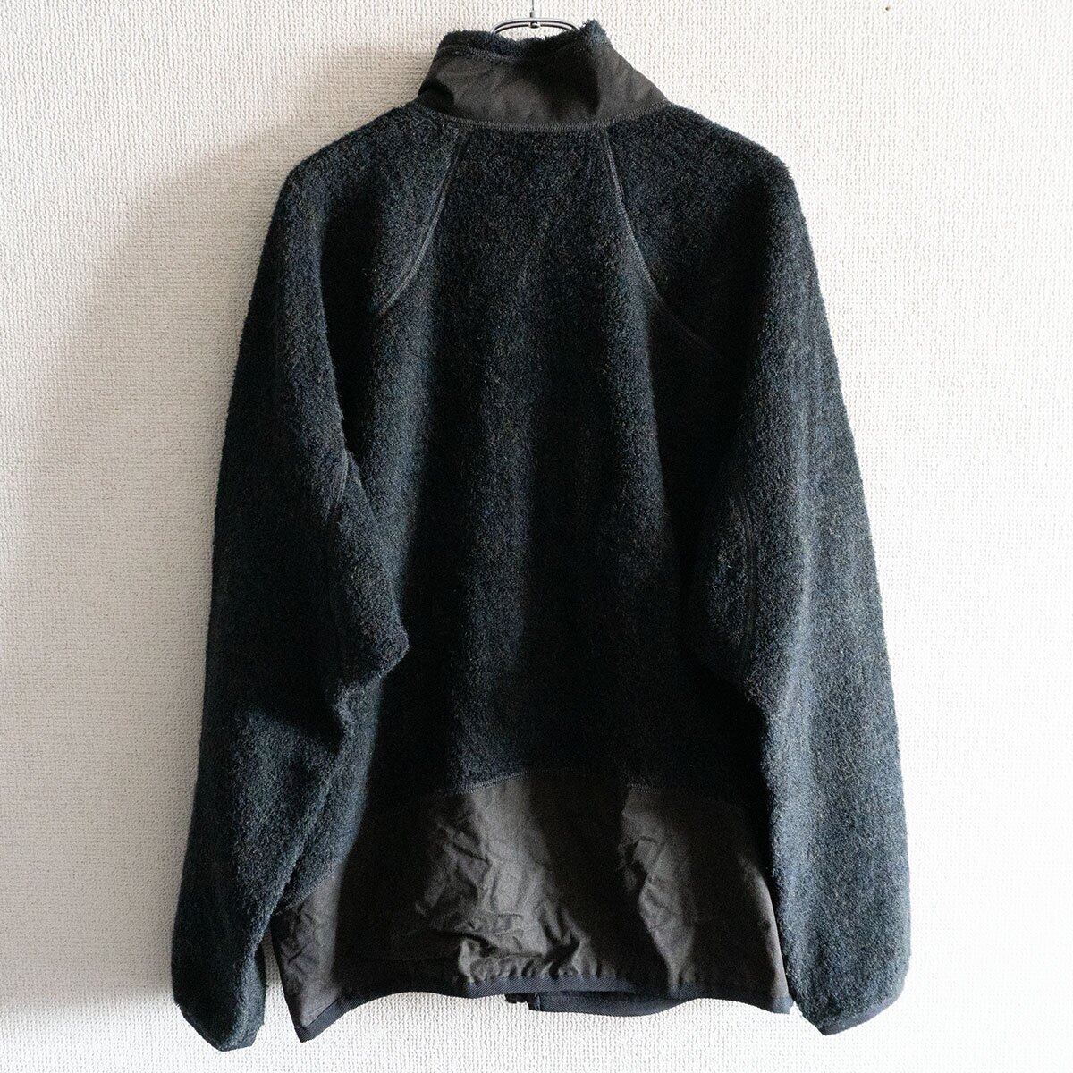 1980年台のパタゴニアマーズシリーズのフリースジャケットをモチーフにAUBERGE流にアレンジしています。英国製のツイード糸をパイルに仕立て、フリースとして使用。よく見ると複雑な杢調なのがよくわかります。
