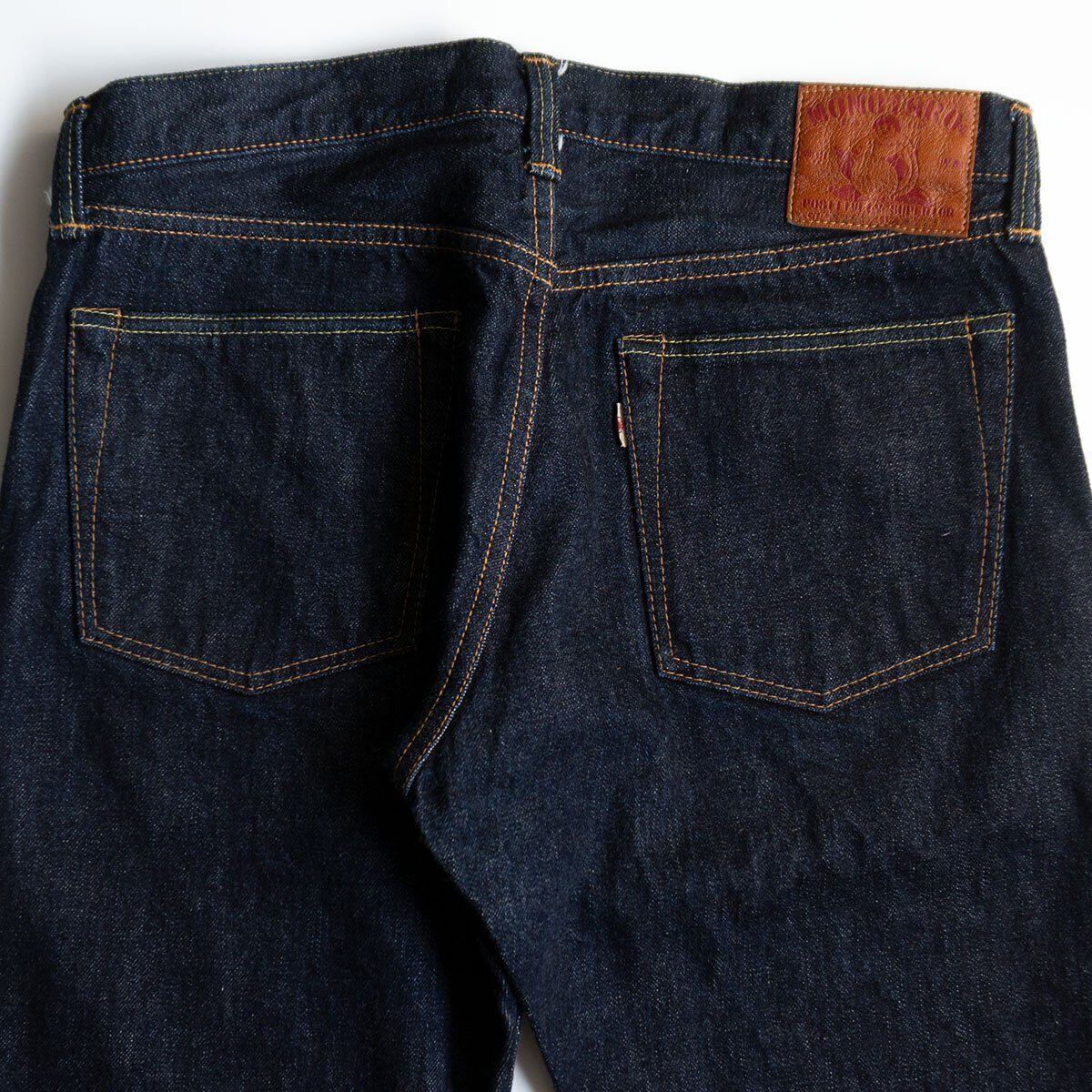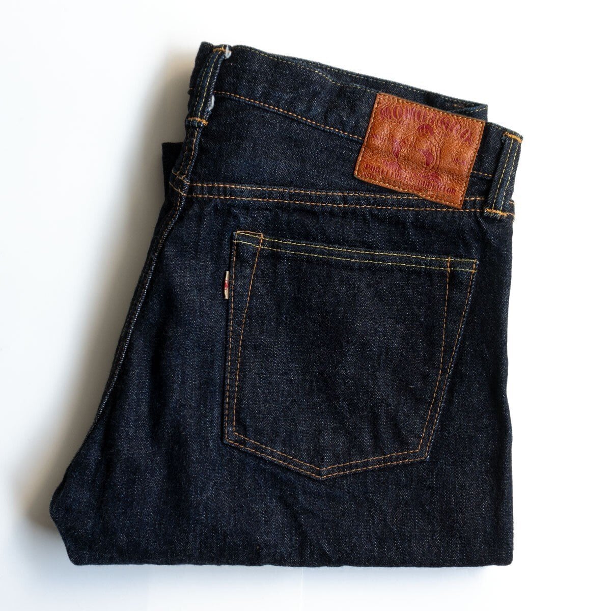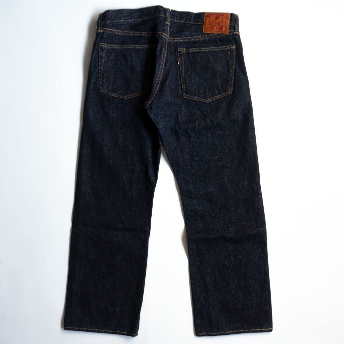 ロープ染色を繰り返し特濃インディゴブルーに染めたジンバブエコットン使用した1本。クラシックな雰囲気を残しつつすっきりとしたシルエット。股上がやや浅めで、太すぎず細すぎずのテーパードの入ったスリムストレートです。これから経年変化をお楽しみいただけます。