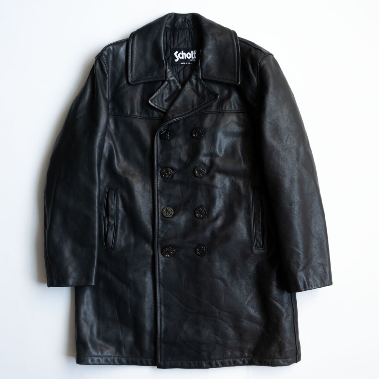 【美品】SCHOTT【レザー ピーコート】40 ブラック レザー アメリカ製 ショット 25080590