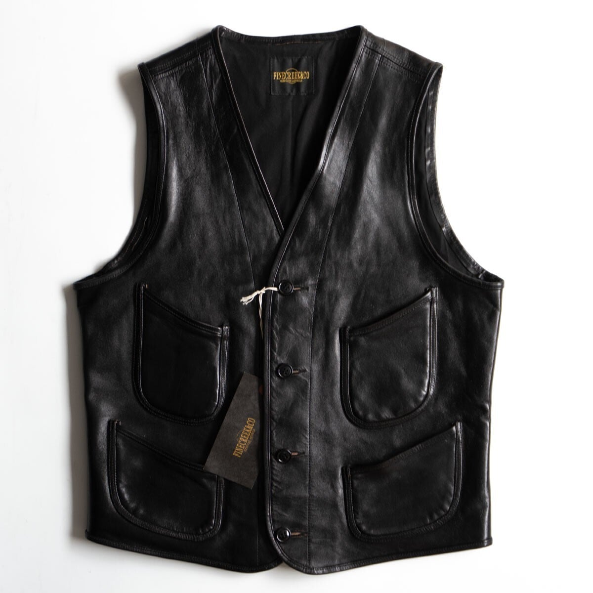 【未使用品】FINECREEK&CO【Jefferson ホースハイド レザー ベスト】38 ブラック ファインクリーク 25090016