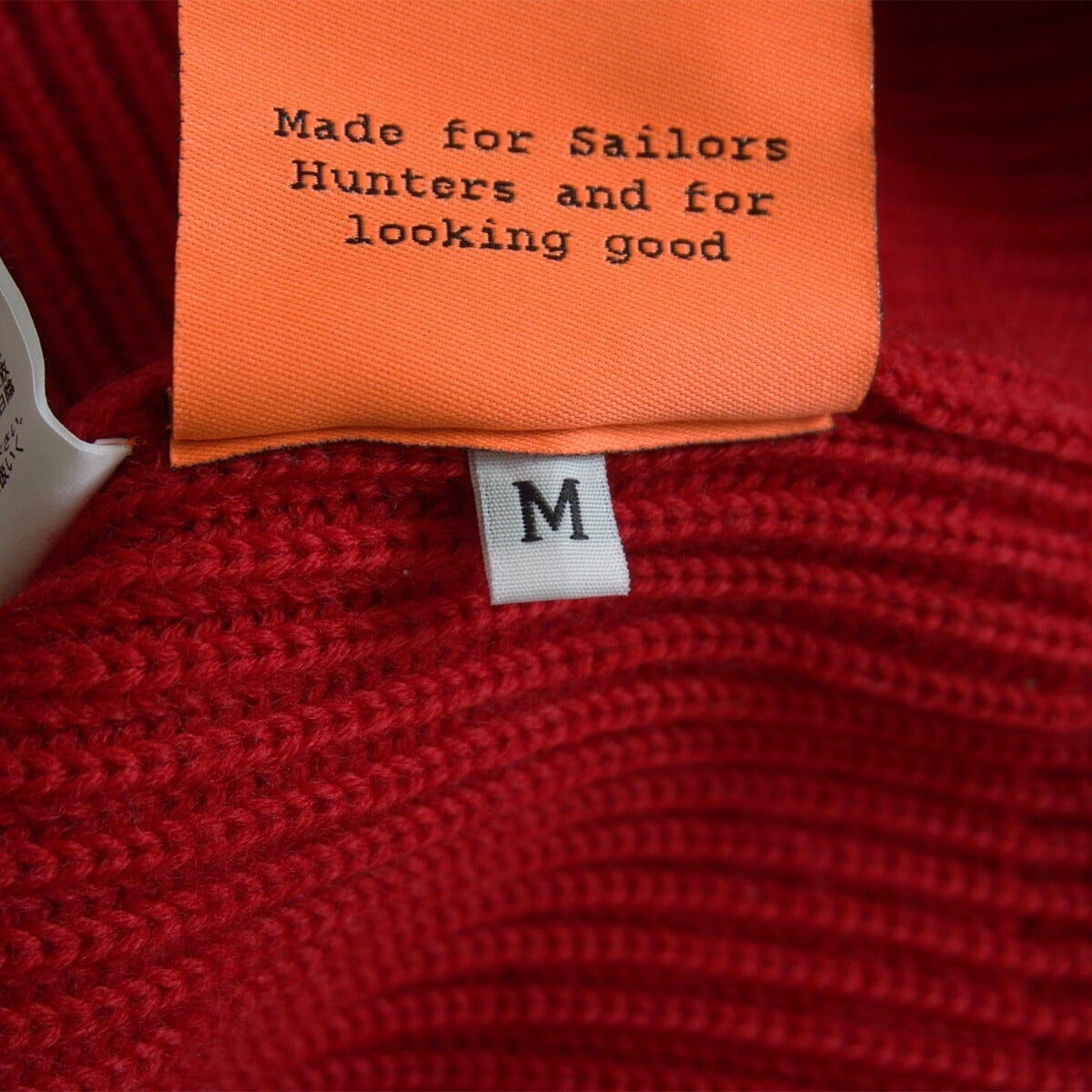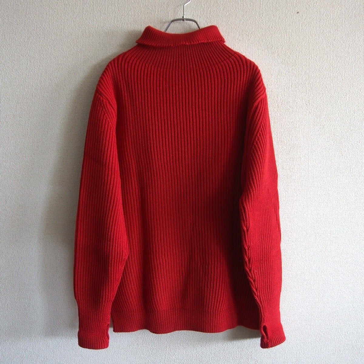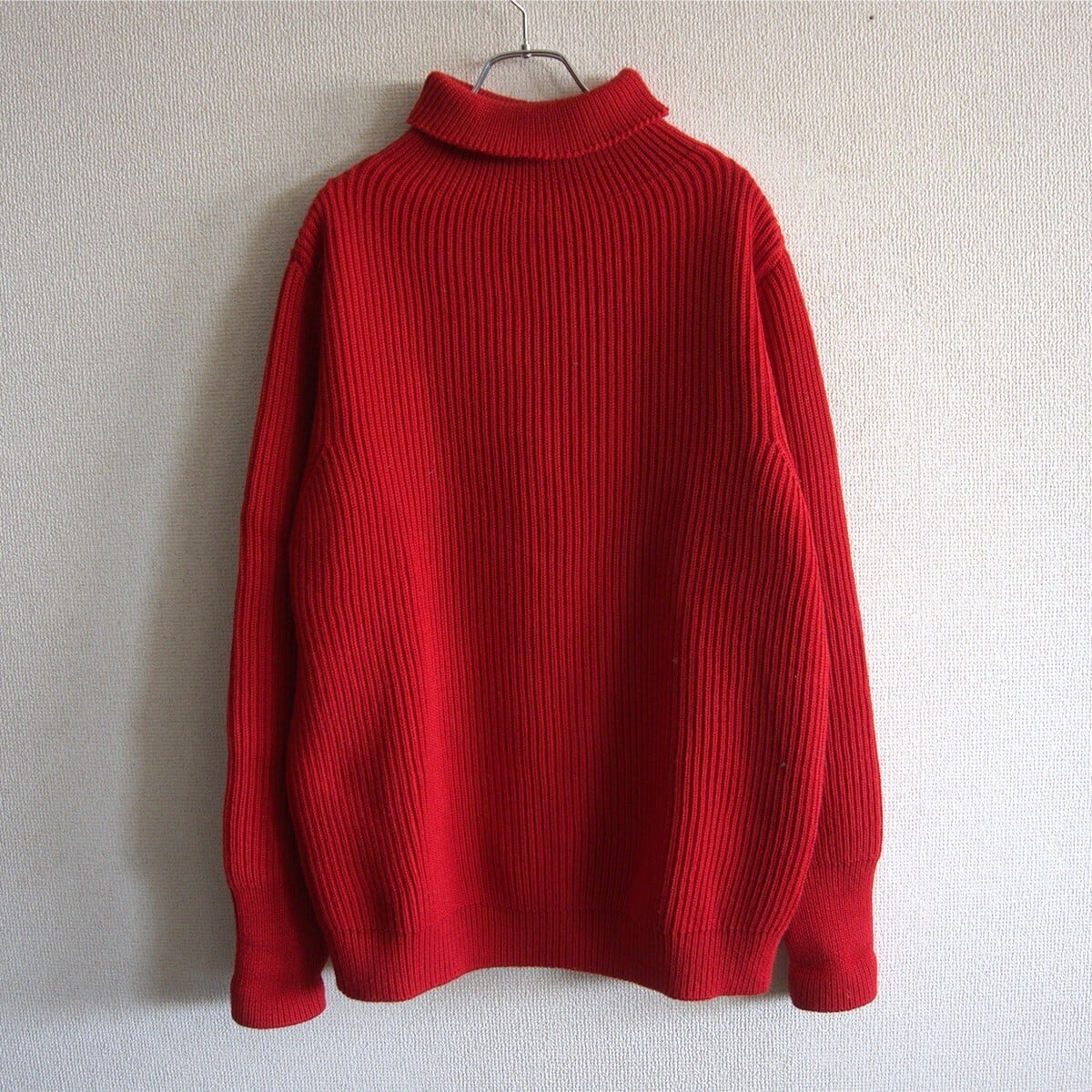 象徴である5ゲージの両あぜ編みニットを使用したタートルネックニット。お色はレッドです。お探しの方や気になる方は是非。