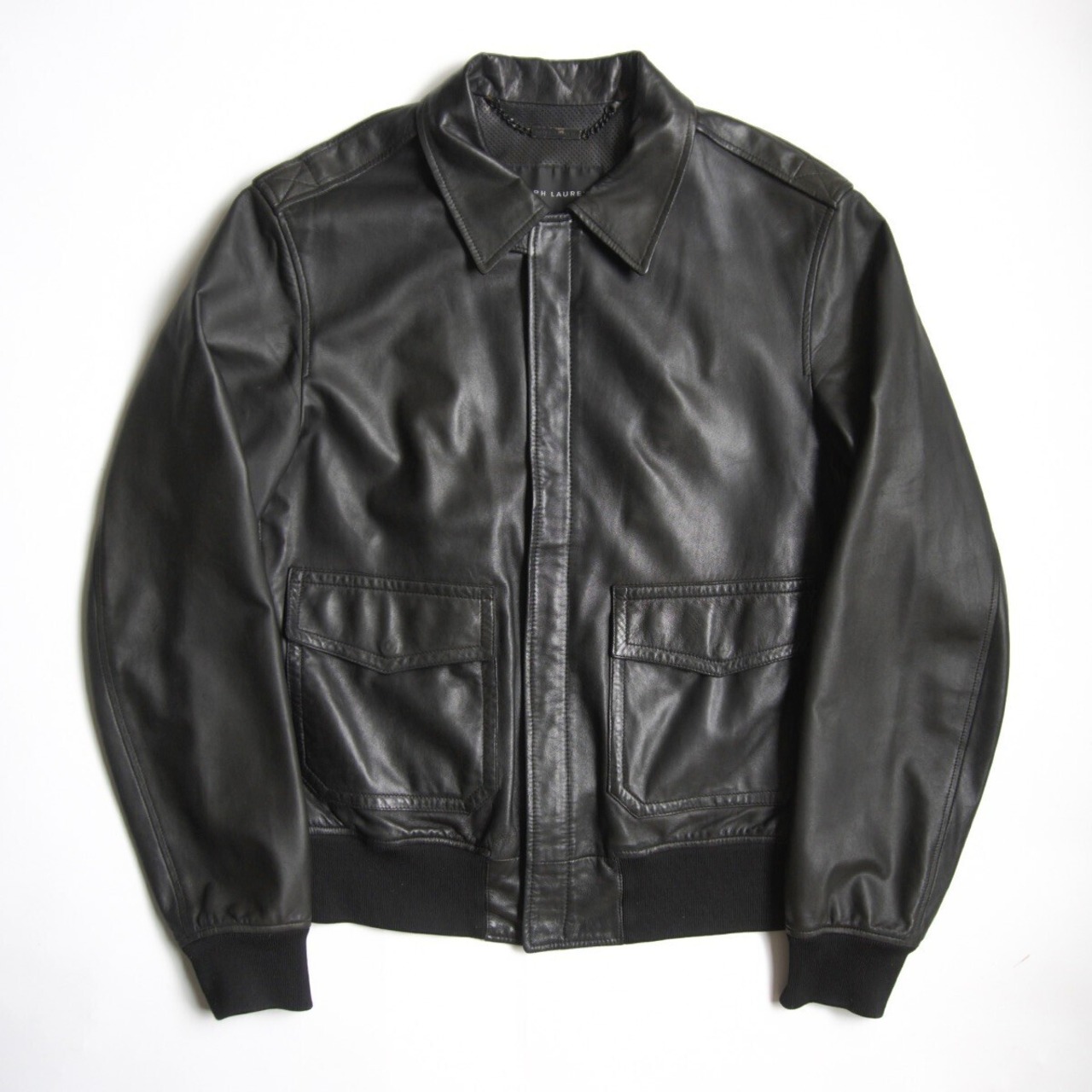 【最高級】RALPH LAUREN BLACK LABEL【A-2 レザー フライトジャケット】M ブラック ラルフローレン ブラックレーベル 25090006