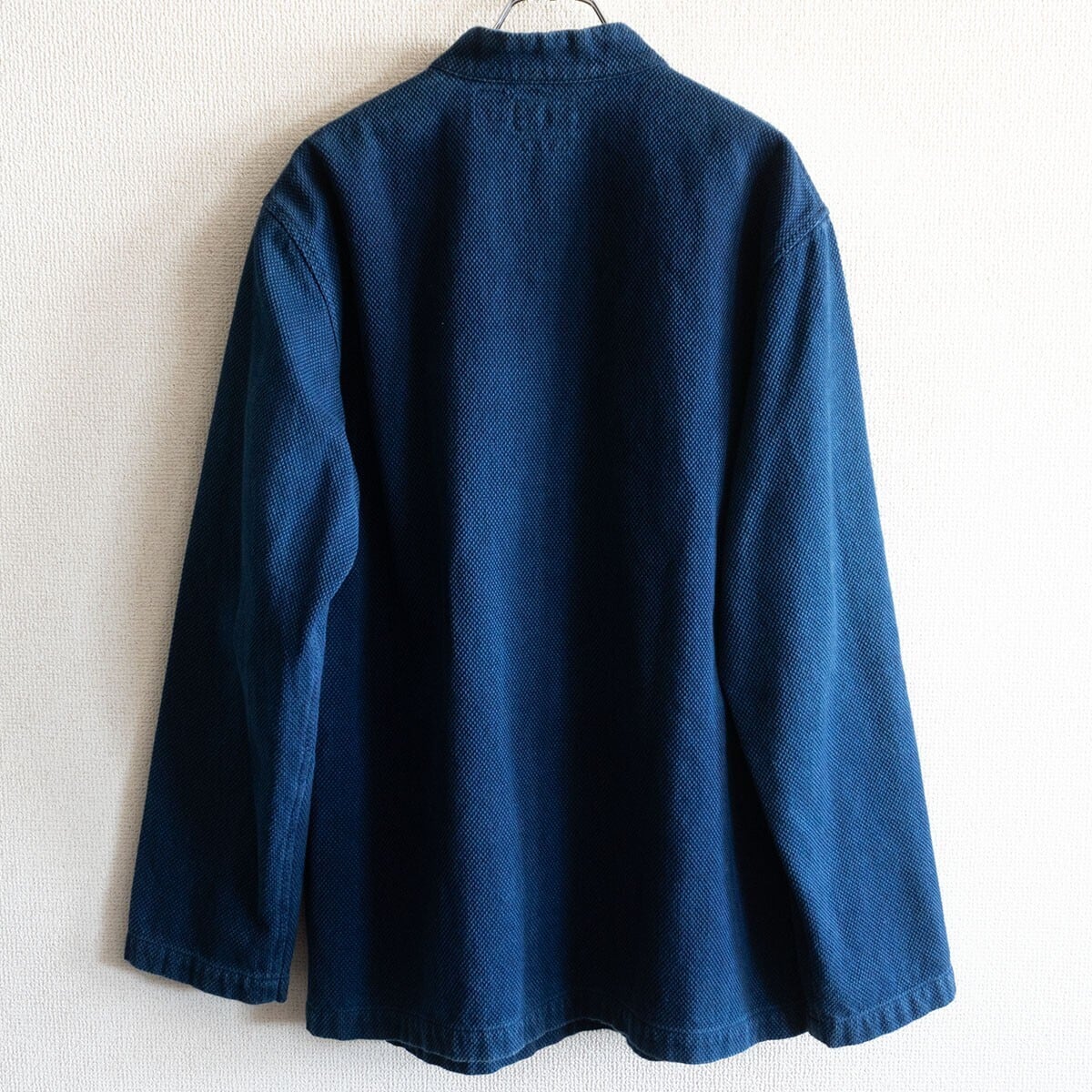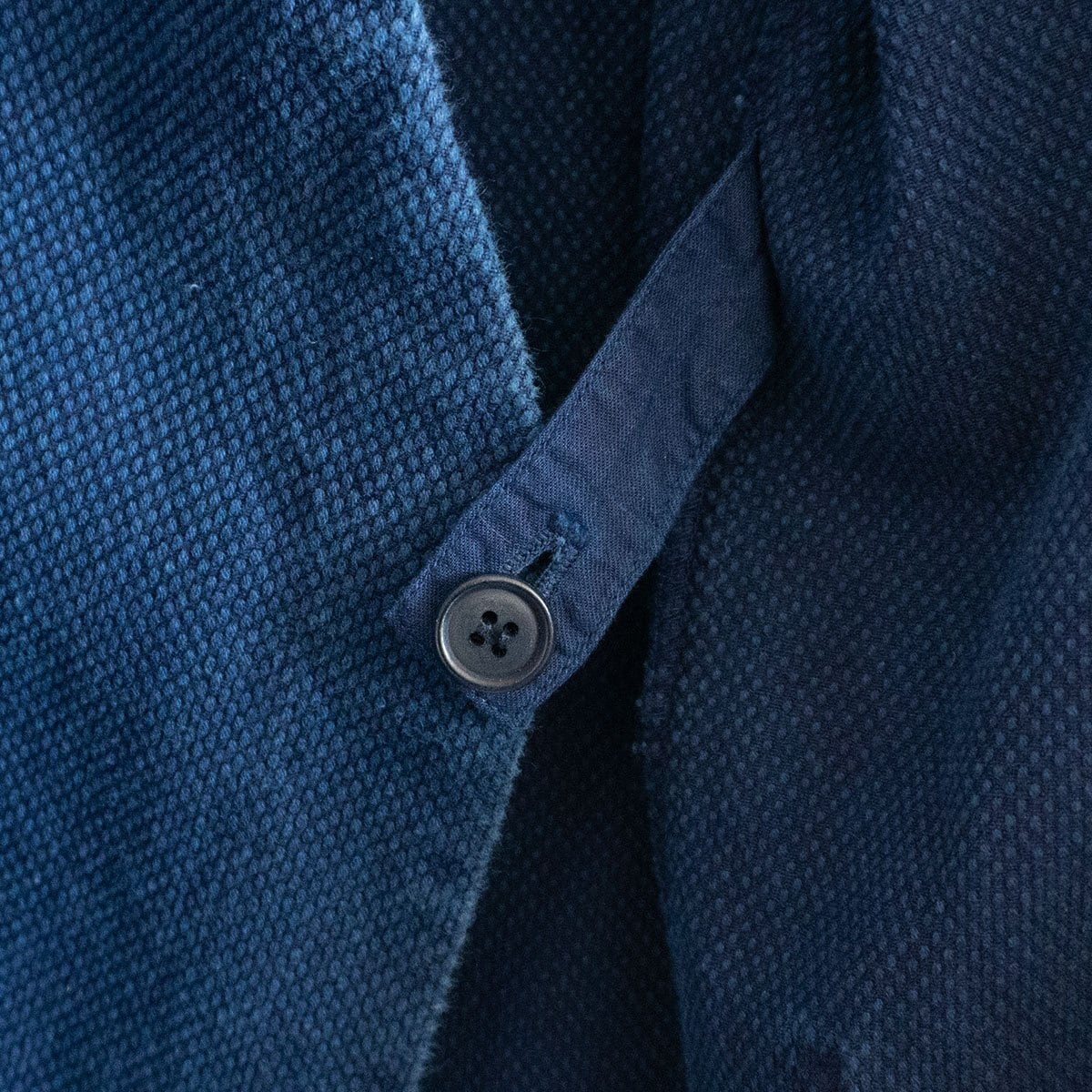 こちらはやわらかく細かい粒状の刺し子生地を使用したジャケットです。一点一点手作業でインディゴ染めを施し、使い込む事で経年変化もお楽しみいただけます。お探しの方や気になる方は是非。