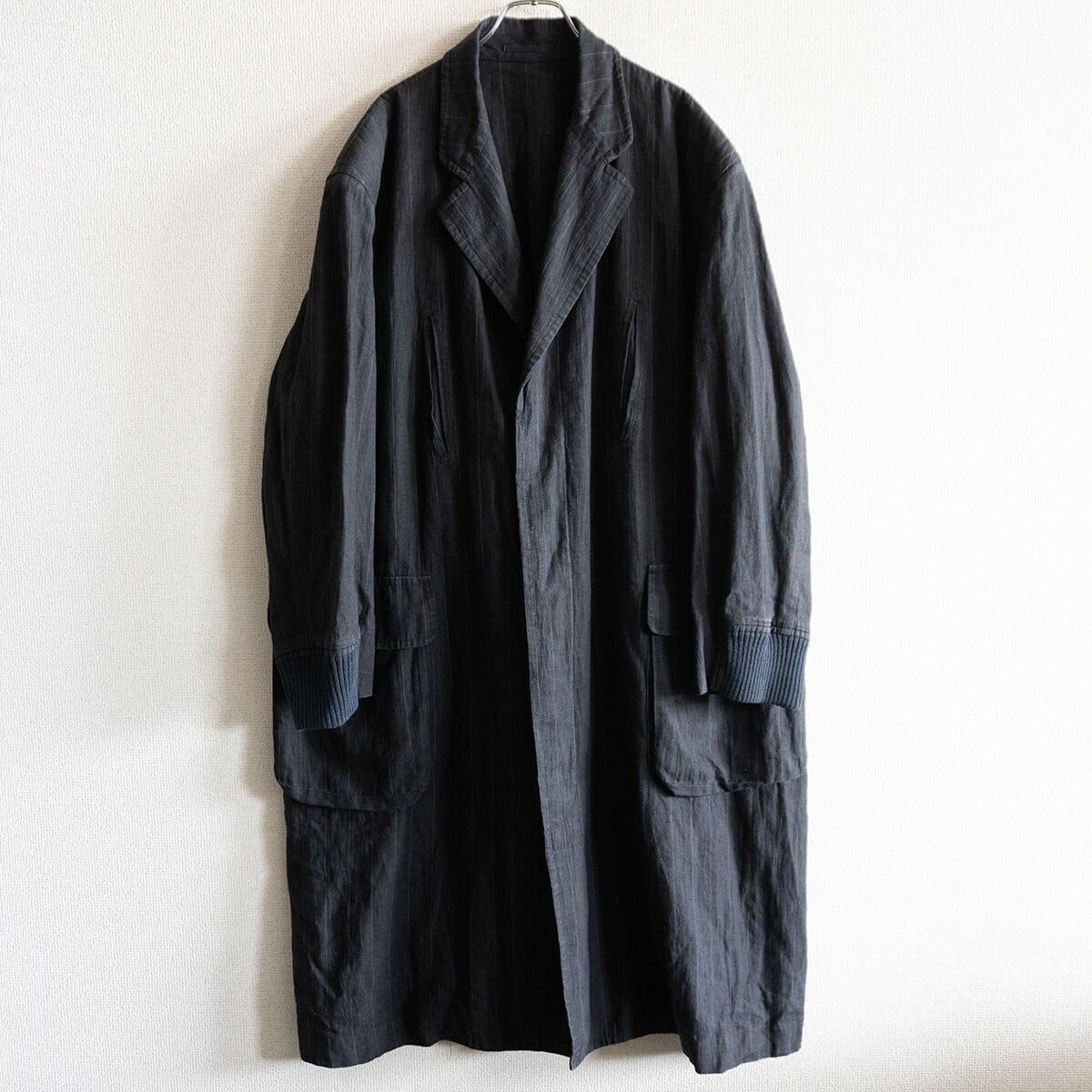 【80年代】COMME des GARCONS HOMME【80S リネン リブチェスターコート】M ワイドシルエット コムデギャルソン オム 25090178